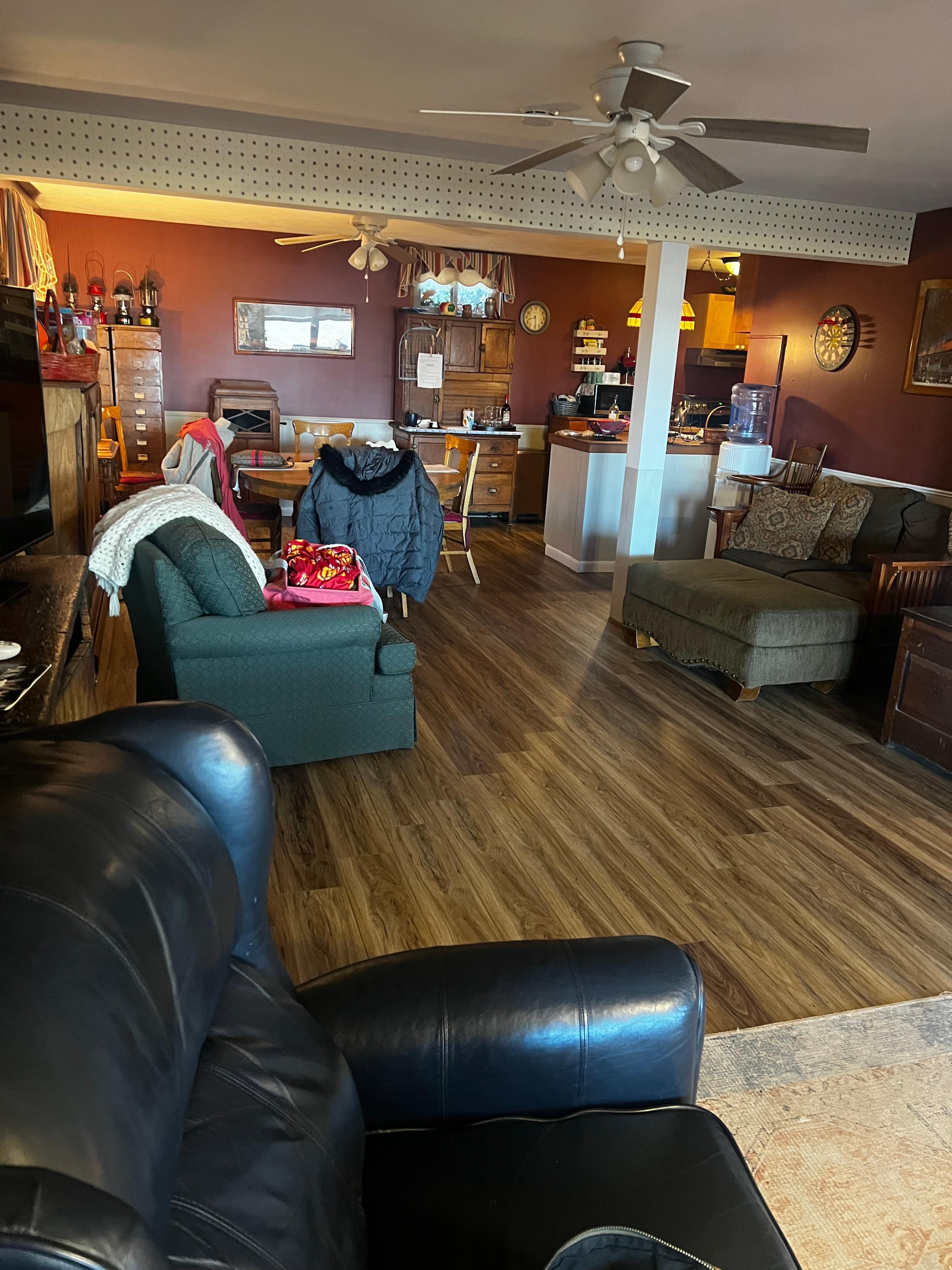 Also inside we have a giant fireplace comfy surroundings all the things you would need on a cold winter day!