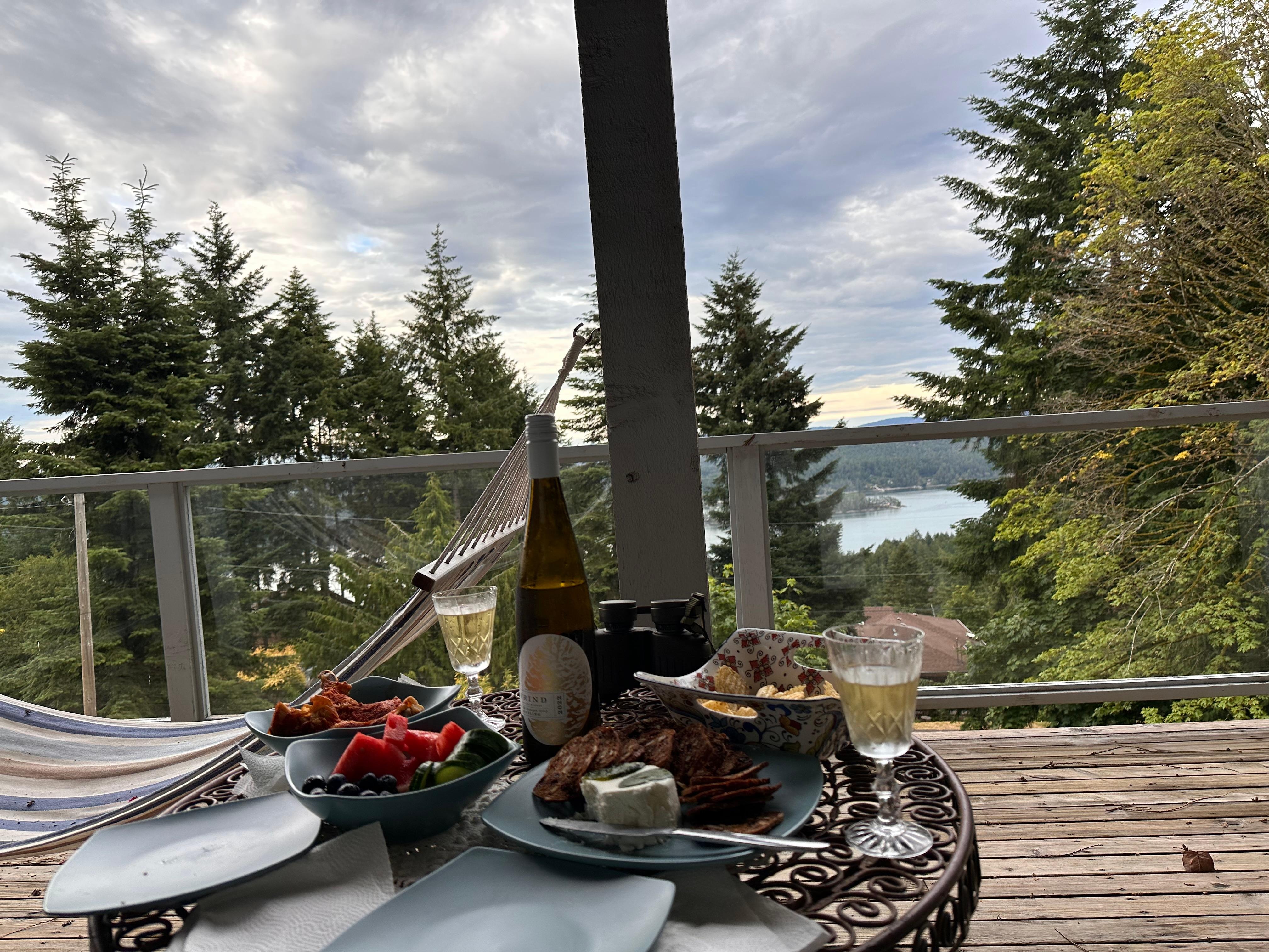 Treetops is perched at the top of a hill & affords stunning views of ocean, trees, boats and wildlife.