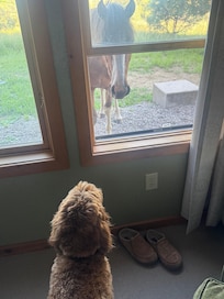 About 50 yards from the main house is the guesthouse. It has its own cozy living room with TV and comfortable furniture, a full kitchen, bathroom, and two comfortable bedrooms.