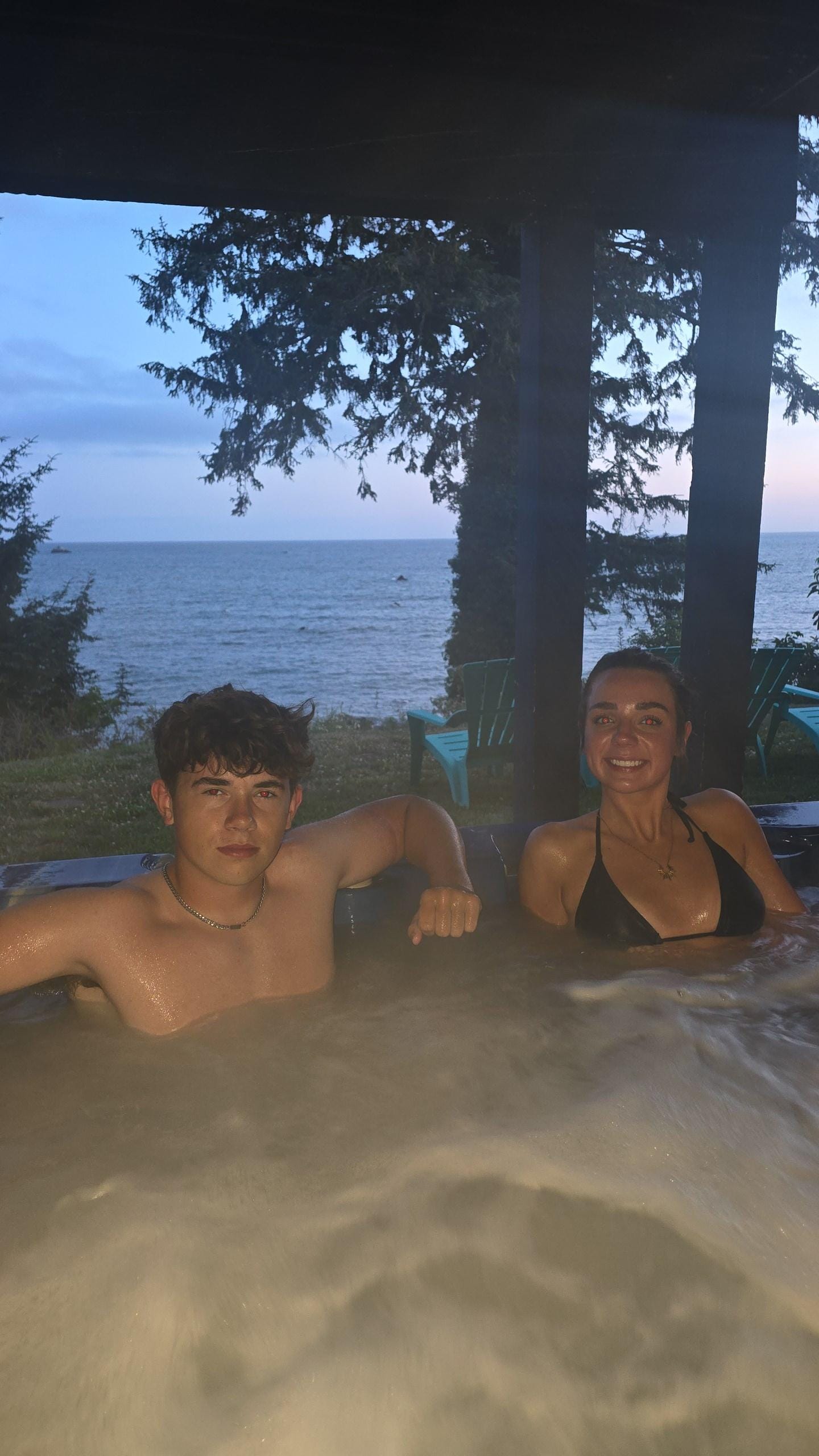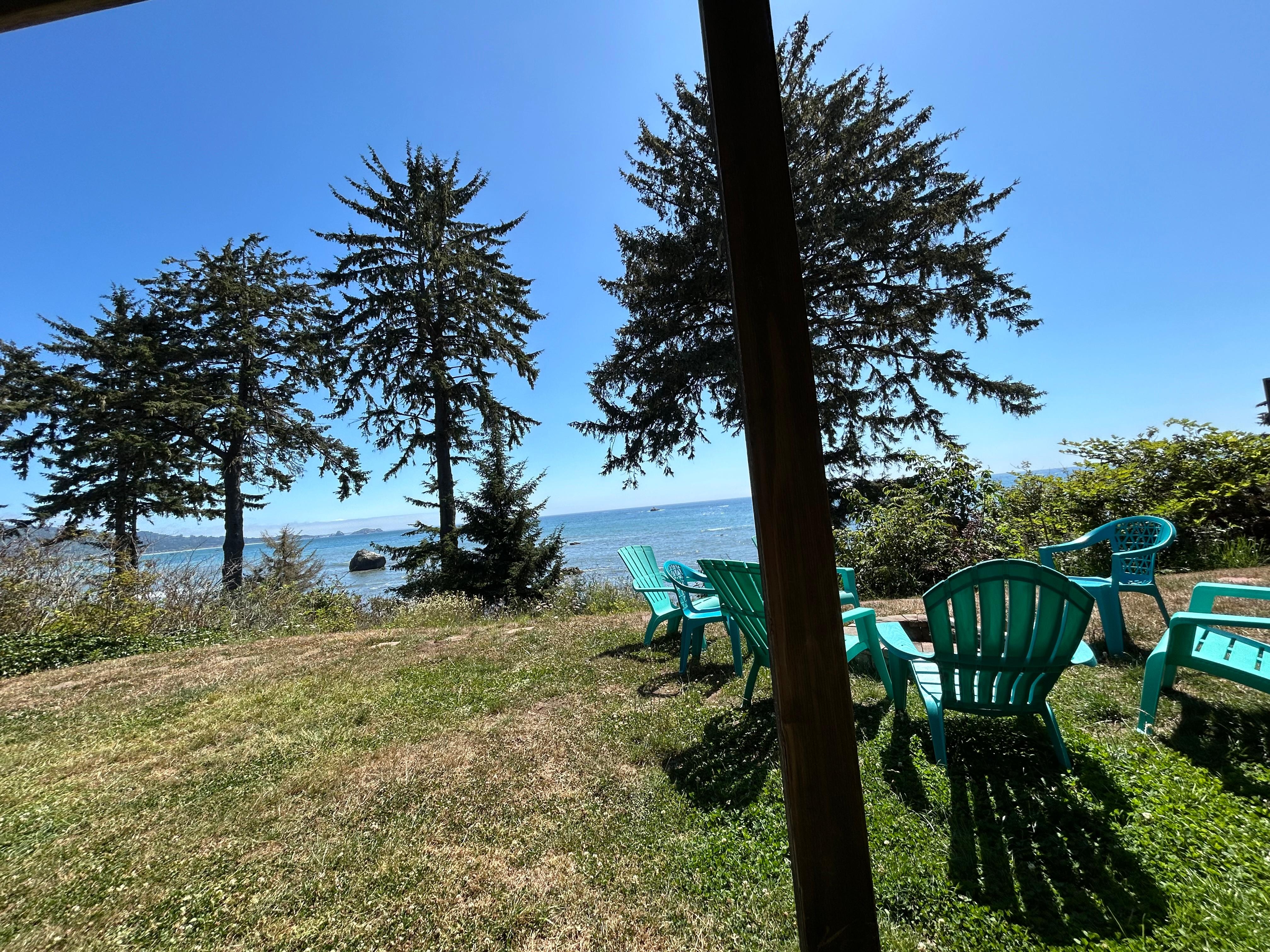 Store vinduer og fantastisk udsigt over havet. Tidepools og strande. To-værelses hjem med king-size senge. En stor stue med sten pejs og to queen-size skjule-senge. Komplet køkken med køleskab, opvaskemaskine, elektrisk glat top række med ovn, mikroovn, kaffekande og brødrister. Patio i fuld længde med udsigt over havet indebærer en veranda swing, bord og stole, spa, udendørs pejs med adarondak stole, grill og picnicbord. Stor græsplæne med den bedste udsigt over kysten. Kort, blid sti til stranden. Plads til små bryllupper.