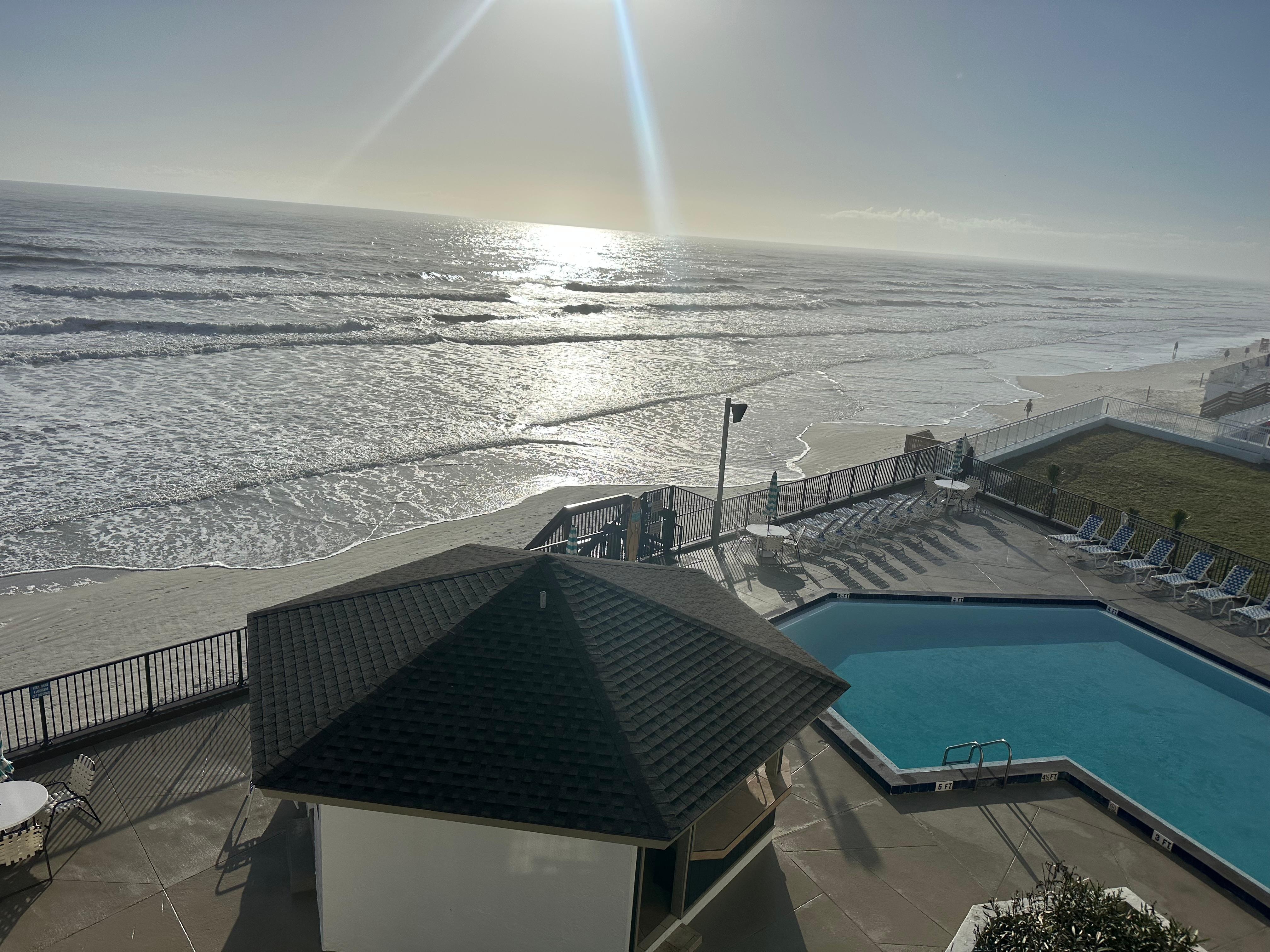 Har Oceanfront fyrre fods balkon med vidunderlig udsigt og smukke møbler en pool?