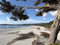 Two rather different beaches to walk to: The long main, gently sloping Carmel city beach, and the changeable, more steep and wild Carmel River State beach with its inner quiet river front and meadow.