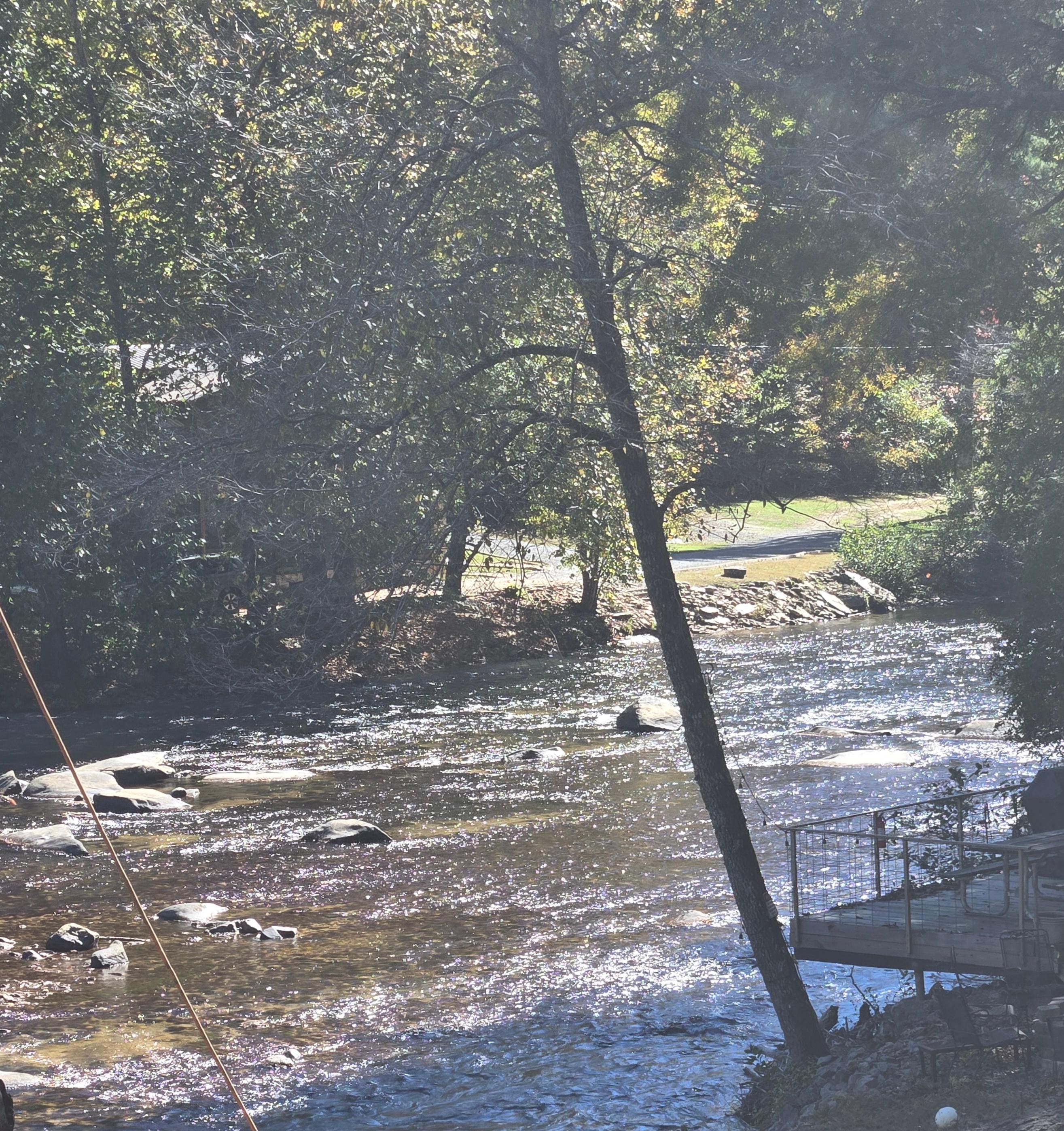 It’s the best location on the Toccoa River. It’s very wide here and we have beautiful waterfalls that our guests enjoy playing in. Tubing fishing Diving the water is so clean and clear here! This river flows into lake Blueridge, coming out of the mountains from underneath springs. If you love the water and mountains this is the place for you !!