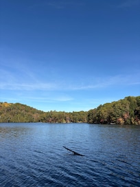 De tre soveværelser er placeret ovenpå med et komplet bad. Der er en queensize-seng, fuld størrelse seng og et søde børneværelse med 2 enkeltsenge. Dronning og tvillinger er helt nye og ekstremt behagelige madrasser. Nedenunder finder du bibliotek, køkken, spillehal og familieværelse med et fuldt og et halvt badeværelse. På bagsiden af huset er en fantastisk solterrasse med en fantastisk udsigt der fører ud til dækket og ildstedet (hold dem små!). En naturlig sti fører ned til søen, hvor vi nyder 250 'kystlinje ved søen, en fantastisk dok med grill, 2 kajakker, indre rør og en hængekøje.
