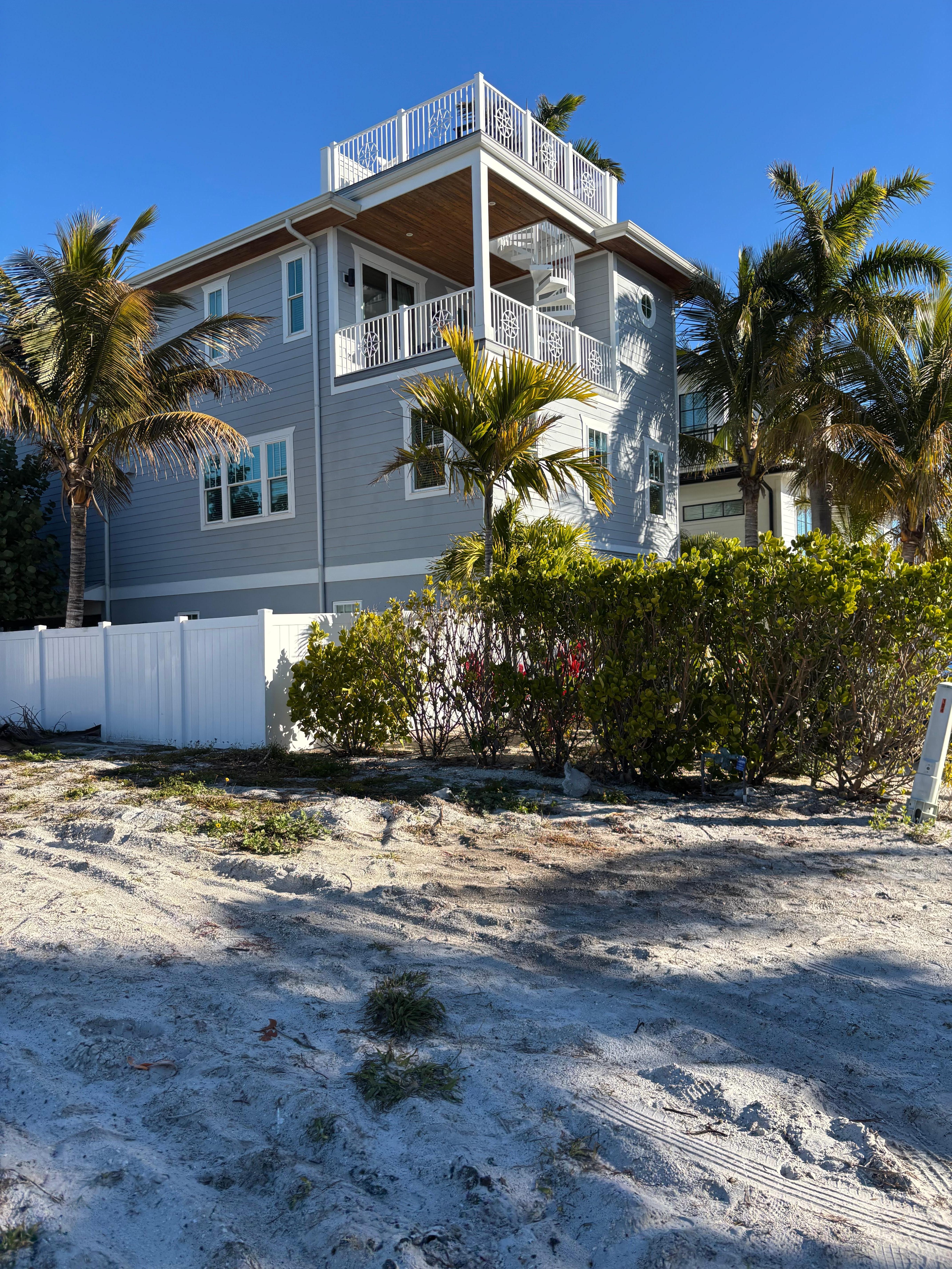 Welcome to Aqua Paradise, a stunning seven bedroom, six full bath, and two half bath luxury retreat just a two-minute walk to Bradenton Beach. Perfectly designed for large groups and multi-family getaways, this home features a rooftop terrace with panoramic Gulf and Bay views, a private heated pool and spa, and endless entertainment amenities including a putting green and ping pong table. With the Gulf and Bradenton Bay right outside your door, Aqua Paradise offers the ultimate Anna Maria Island lifestyle.