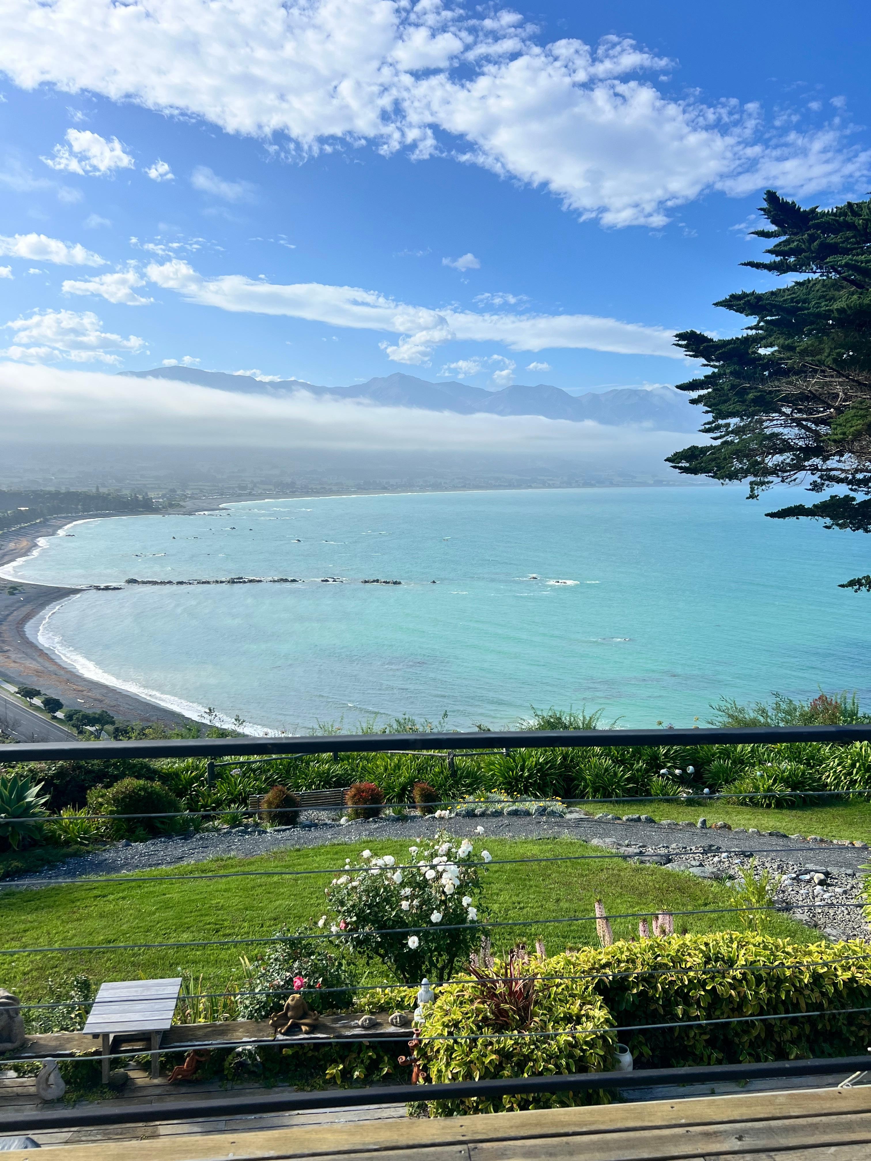 Cliff-toppen blev bygget til solen og blev upåvirket af det nylige jordskælv. Ingen vejstøj, bare lyden af havet. Cliff-top have inkluderet i “Great Gardens of New Zealand” af Derek Fell,