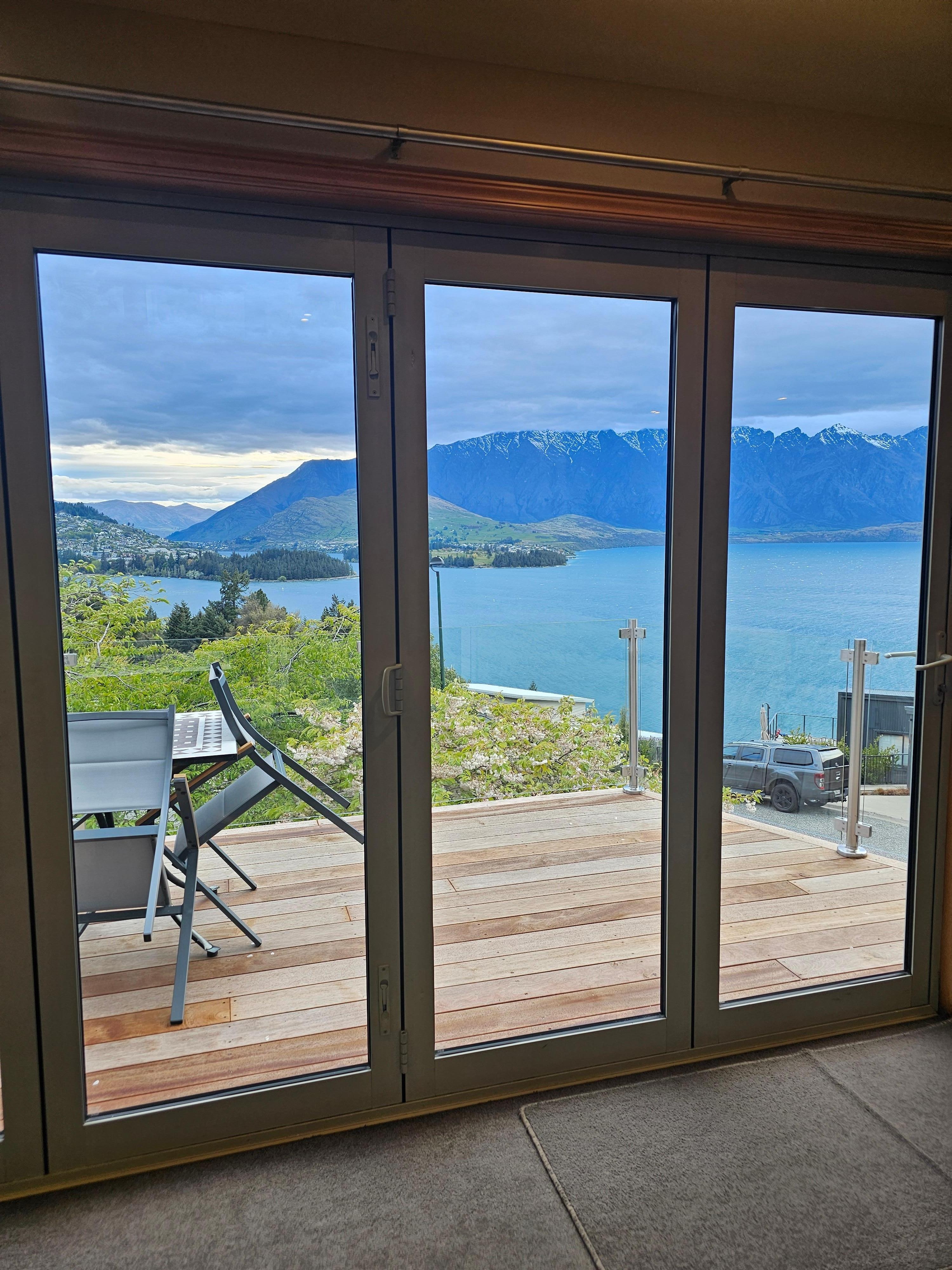 Nyd den spektakulære udsigt over Remarkables og Lake Wakitipu til Queenstown Gardens fra alle levende områder i dette hus, beliggende i det eksklusive og rolige område Aspen Grove. Om natten kan du sidde ved ilden og se på lysene i Queenstown og bugten. Et gourmetkøkken, som er en del af det største opholds- og spisestue, giver kokken mulighed for at nyde selskabet og samtalen, mens han stadig nyder udsigten over en million dollar! Hvert soveværelse er udstyret til privatliv og luksus, to har ensuites, og de to andre deler et separat badeværelse komplet med privat spabad. Alle badeværelser er udstyret med gulvvarme og opvarmede håndklædeskinner for din komfort. Alle værelser har et privat fladskærms-tv, eller du kan vælge at nyde den separate underholdningslounge. Computerfaciliteter, inklusive gratis wi-fi internetforbindelse. Nok om arbejde! Gå ud til de smukke haver, og du vil opdage et privat grill / underholdningsområde - komplet med udsigt til Cecil Peak. Huset er bekvemt placeret - ti minutters gang eller ti dollars i en taxa (hårdt valg!), vil tage dig til centrum af Queenstowns action og natteliv. Fremragende restauranter, kasinoer, natklubber, shopping og turistfaciliteter er lige ved hånden. Beliggende kun 500 meter op ad bakken finder du en fantastisk lille restaurant, take-away og dagligvarebutik.