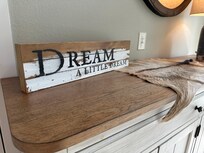 Step into 'Dream a Little Dream,' where the essence of a modern farmhouse cabin greets you with warmth and style through its open floor plan. The kitchen and dining area, adorned with updated appliances such as an oven, gas stove with built-in griddle, and a dual coffee maker, cater to every culinary enthusiast's dream. The kitchen island, complemented by bar stools, adds three additional seats, while the formal dining table comfortably seats four, making mealtime both a luxurious and intimate affair.