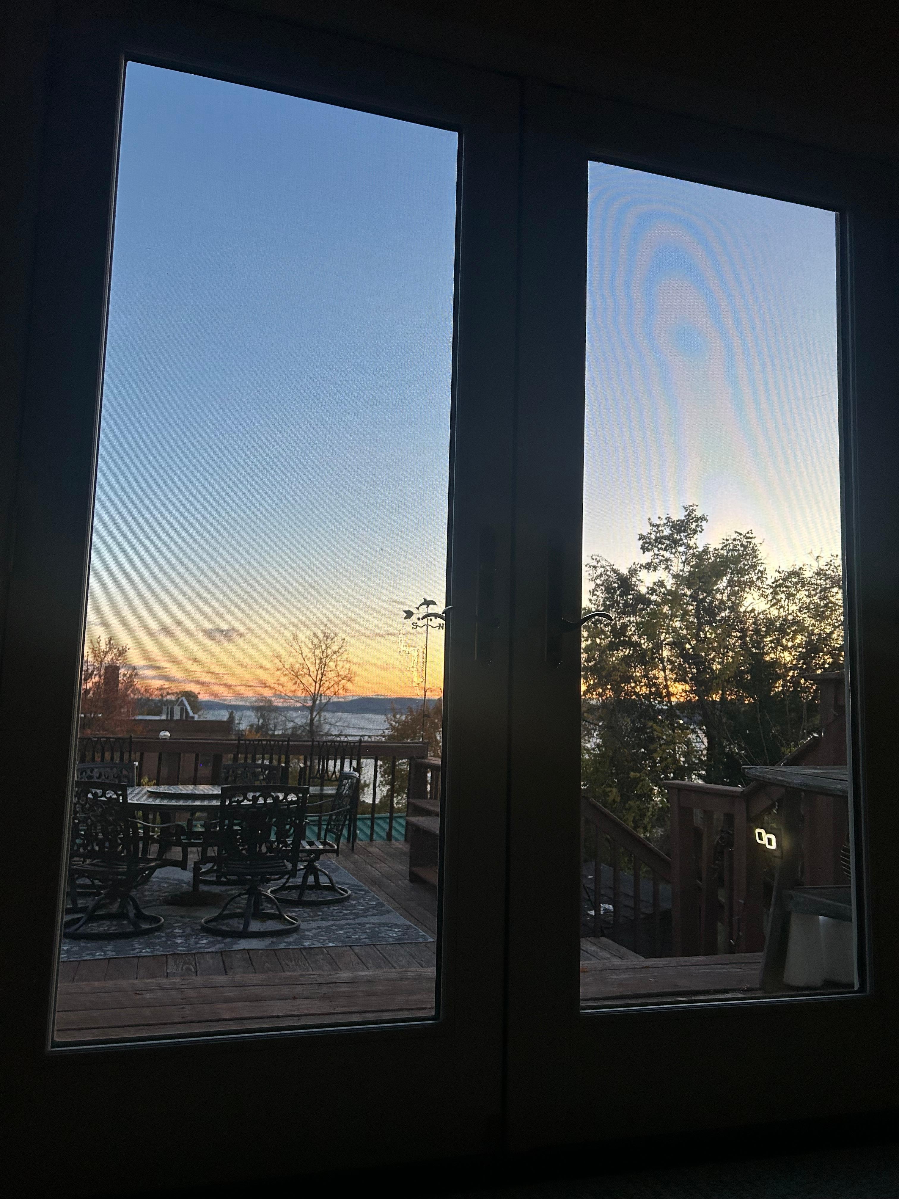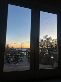 Three video surveillance cameras monitor the exterior of our home and they are located at the front of the house, patio, and the back deck to the left as you exit.