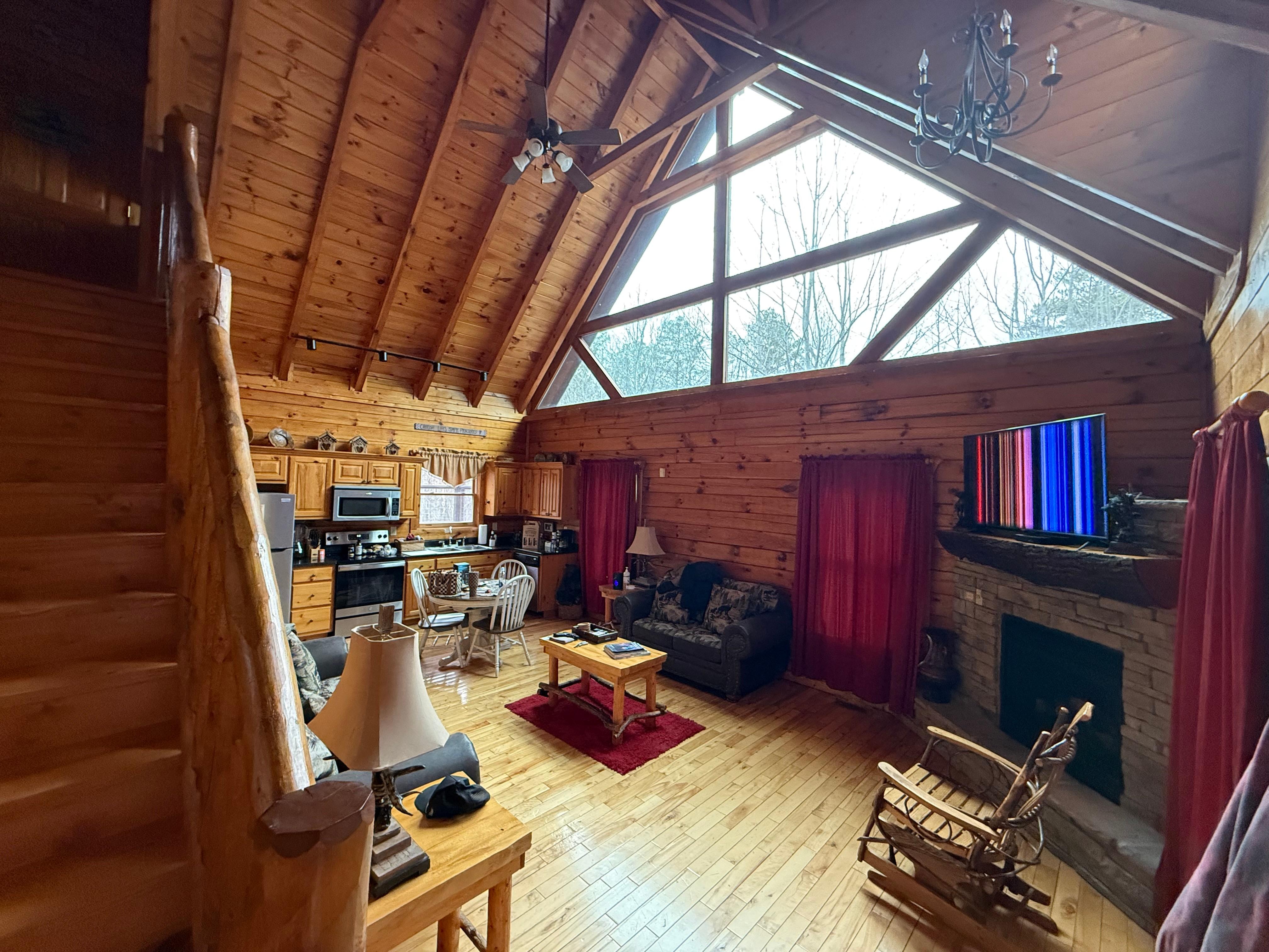 - Living Room/Kitchen is very spacious, has a stacked stone Fireplace, Queen Sleeper sofa, Full Bathroom, Smart TV and BluRay Player.