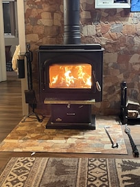 This is a charming chalet with beautiful cherry wood ceilings accented with dark wood beams, a wood burning stove, butcher block island, full stand-by generator, AC mini splits, and so much more.