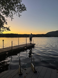 Føler at du er midt i Adirondacks endnu shopping og attraktioner er kun få minutter væk. Denne historiske sten hytte ligger langs en blind vej. Omgivet af bjerge og vand det er meget privat. Kabinen byder på vidunderlig udsigt over søen. Der er en screenet i veranda med udsigt over søen, et vidunderligt sted at starte din dag. Så gå ned ad trappen til din private sø foran og tage en svømmetur. Søen er fantastisk til svømning, fiskeri og sejlads. Mens vandet ud på anklagebænken er lavvandet med sandbund det bliver dybere, så du kan hoppe ind fra slutningen af dock. Efter en dejlig dag på søen, har diner på den udendørs terrasse og slappe af foran lejrbålet. Sikke en perfekt dag i Adirondacks! Vil du gøre noget andet i morgen? Bare tjek den lokale handelskammer hjemmeside. Der er forlystelsesparker, Outlet Shopping, museer, indkøbscentre, restauranter, vandreture, white water rafting, ridning, etc. Vi er sikker på du vil have en stor tid.