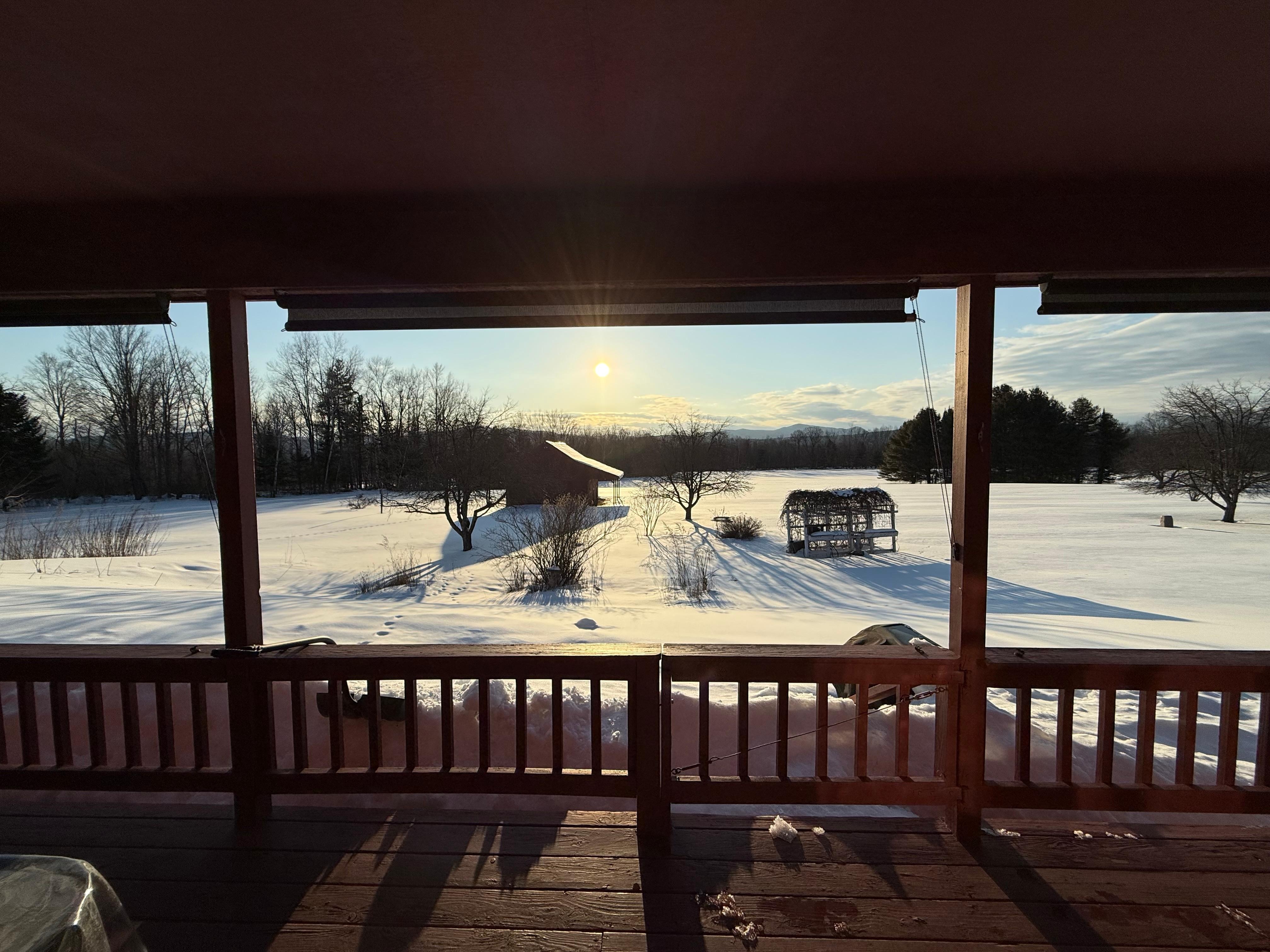A highlight of the property in the Spring, Summer and Fall is the large covered back porch with spacious outdoor dining and seating areas, along with lighting. This is often the most used "room" during these months with its amazing views, including sunsets. There is a gas grill off the porch. A mowed walking trail around the meadow allows you to enjoy all that the Vermont warmer weather seasons have to offer without leaving the property! There is also an attached two car garage with plenty of room for cars, skis and other gear.