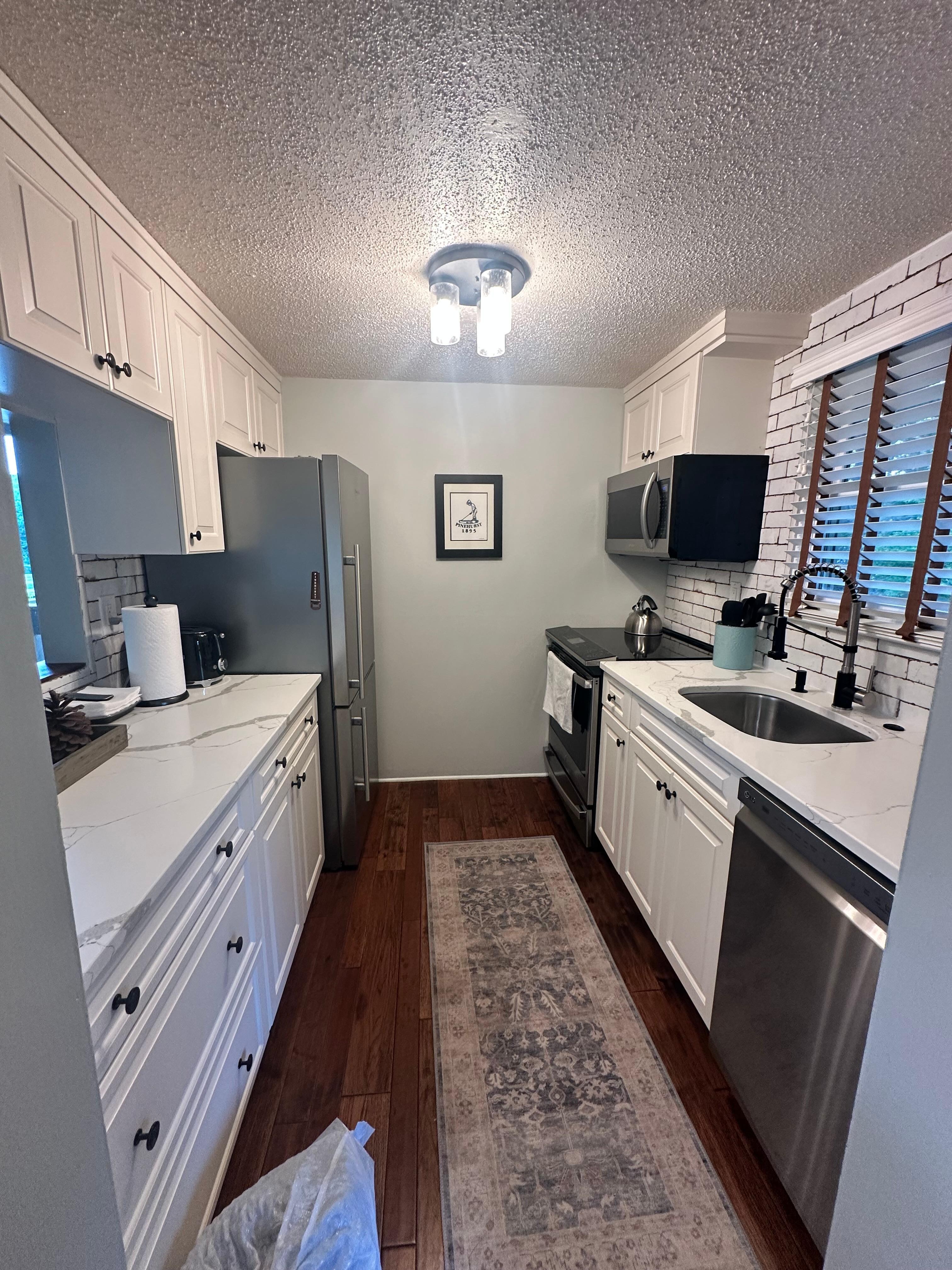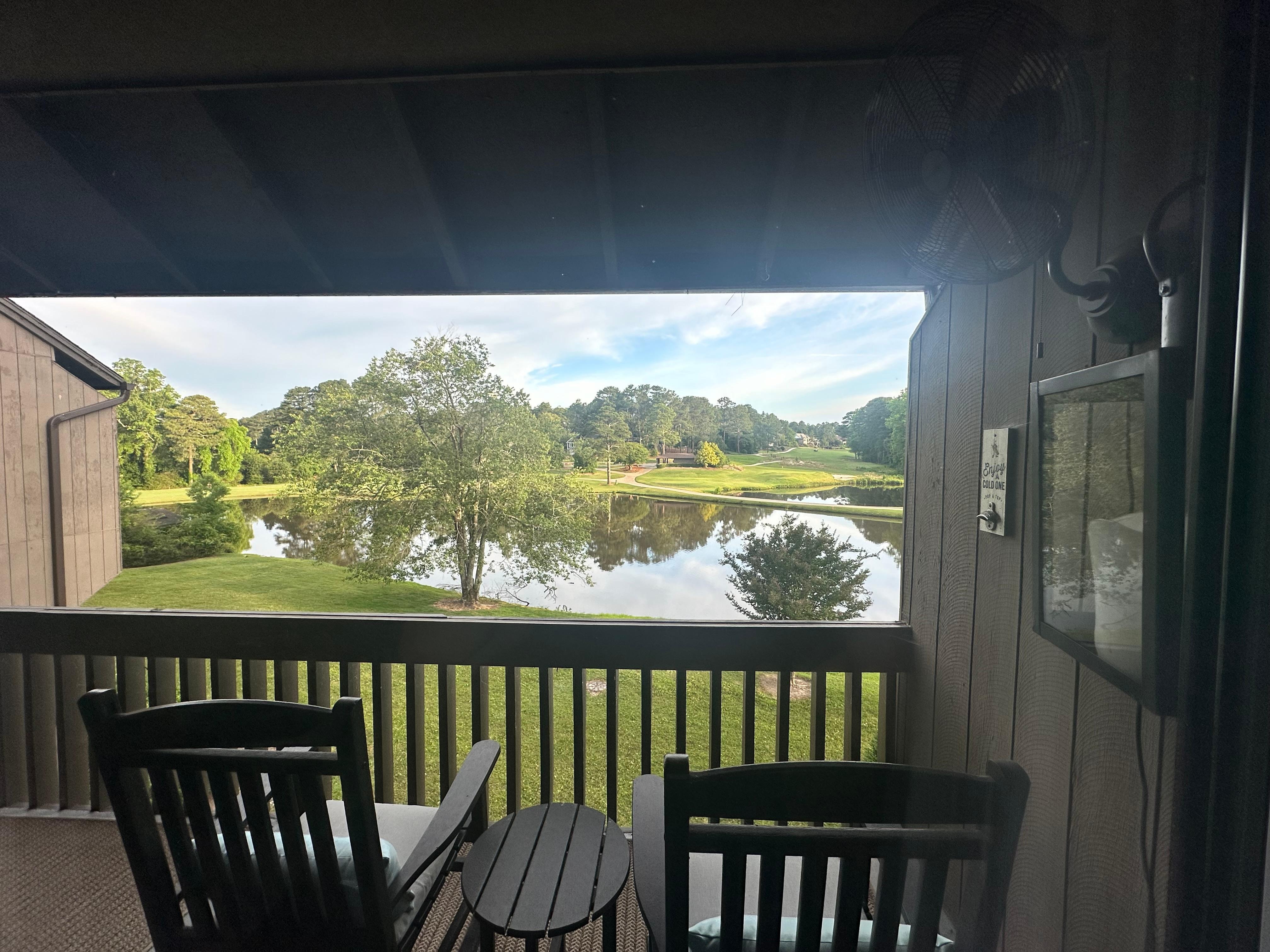 Pinehurst Golf Front, 2 Bedroom, 2 Bath Condo has the best location and Golf Views in Pinehurst! Sip cocktails on the porch rocking chairs and enjoy the Magnificent views of Pinehurst #3 and #5. Beautifully Renovated, Non-Smoking, Golf Front , 2 Bedroom, 2 Full bath condo. Watch some golf on the 75" Flatscreen in family room and Flat screens in each bedroom. Free Hi-speed Wi-Fi and cable. Hardwood floors throughout, hi- end appliances, fridge w/ice maker , stackable Washer and Dryer, 12 C coffee maker and single cup Keurig, electric charbroil grill on porch and all the utensils and cookware needed for a stay. Shampoo, soap, toilet paper, laundry detergent, dish soap , paper towels provided. Upscale furniture including Luxury Sealy King bed and 2 Luxury Sealy Twin XL mattresses and pull out Queen sofa bed. Our Pinehurst Condo is located in the Erin Hills complex, close to Pinehurst CC and less than a mile drive to Pinehurst Village and The Carolina Hotel and Spa.. Unit has New windows and doors and New AC and Heating system. Ring doorbell. Late check-out, Early check-in may be available with advance notice. WINTER MONTHLY Rental discount pricing available Dec 2025, Jan 2026, Feb 2026.