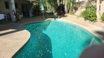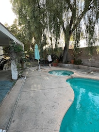 We stayed here hoping for a relaxing place to come back to after exploring Palm Springs each day. The home is comfortable but is not up to rental standards and needs lots of maintenance. I will say the good parts first: It is spacious, and comfortable. The bed in the master bedroom was very comfortable and they have put great effort into providing quality bedding and lots of extra pillows. It is peaceful and on a quiet street. Unfortunately, it was not as advertised, and is in need of deep cleaning and maintenance. The photos here are very misleading and everything is fresh, clean and gleaming but that was not the case. We could never get the pool running and the hot tub never exceeded 86 degrees which is not hot. Most of the furniture and rugs are damaged, stained or very old and looked like curbside acquisitions. The backyard/pool was just filthy and unmaintained. The yard is NOT secure and pet friendly. The fences are falling apart in many places and have huge gaps where dogs could escape. (We supervise our dogs so it was OK)There are alarm units on the sliding doors that you can't turn off (or couldn't figure out) so we couldn't open the sliding patio door in the master bedroom. There are remotes for Roku and FireTv and things, but there was no Roku or FireTv boxes hooked up to the TV so we couldn't use the smart TV.The owners left boxes of delivery items in the foyer which was weird.In the end, we were fine, but it was really not acceptable for a rental.