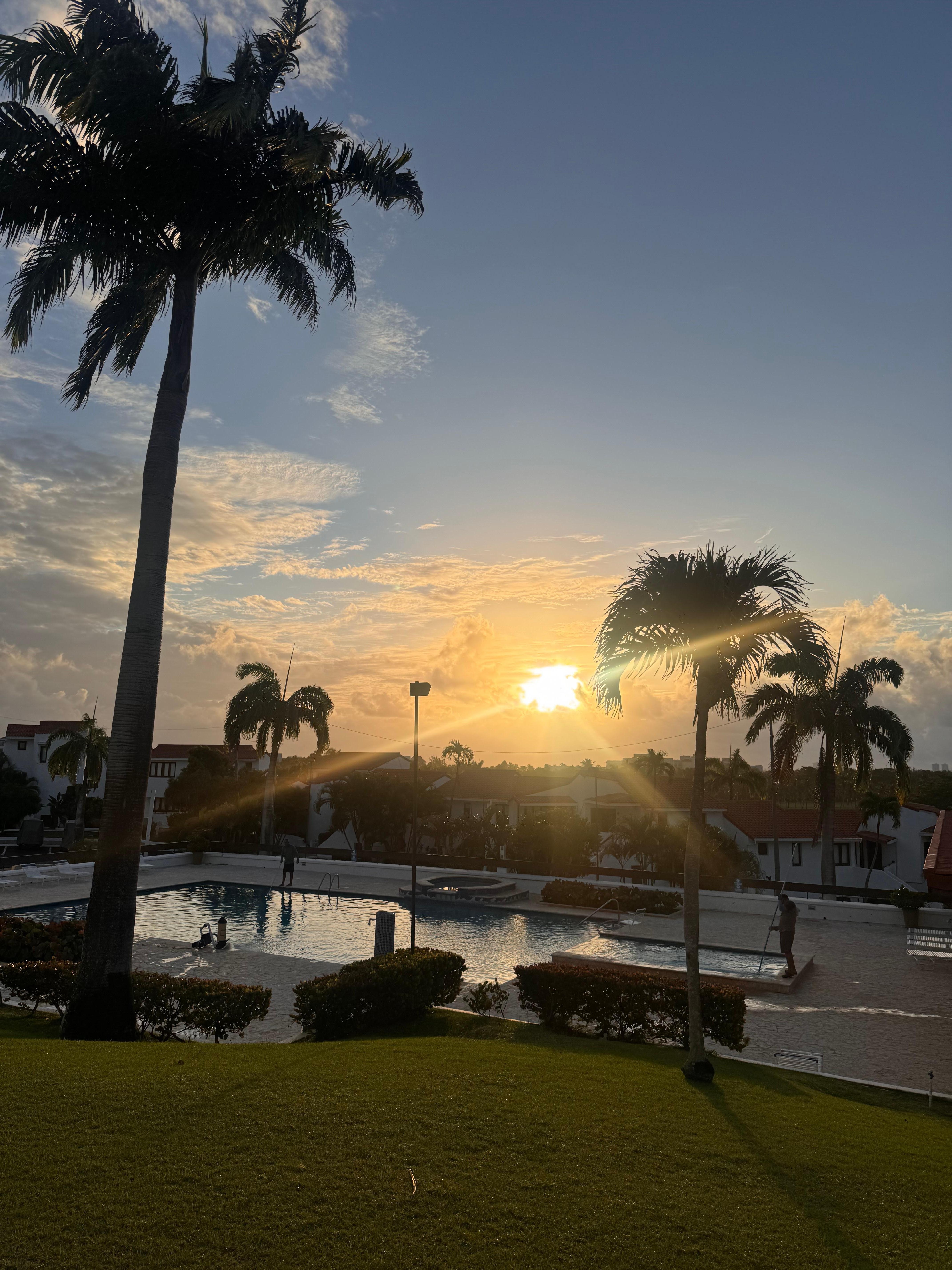 One bedroom apartment steps to the pool inside the Wyndham Río Mar Resort. It is beautifully decorated, and remodeled 2021. The apartment is comfortable for a couple, or a couple with kids. The living/family sofa can be pulled together to form a sleeping area for a kid. Fully equipped with refrigerator, oven, stove, washer and dryer. The apartment is in the first floor with a great view to the pool, and El Yunque. The pool area has a huge BBQ for your use. Come and enjoy your stay!!