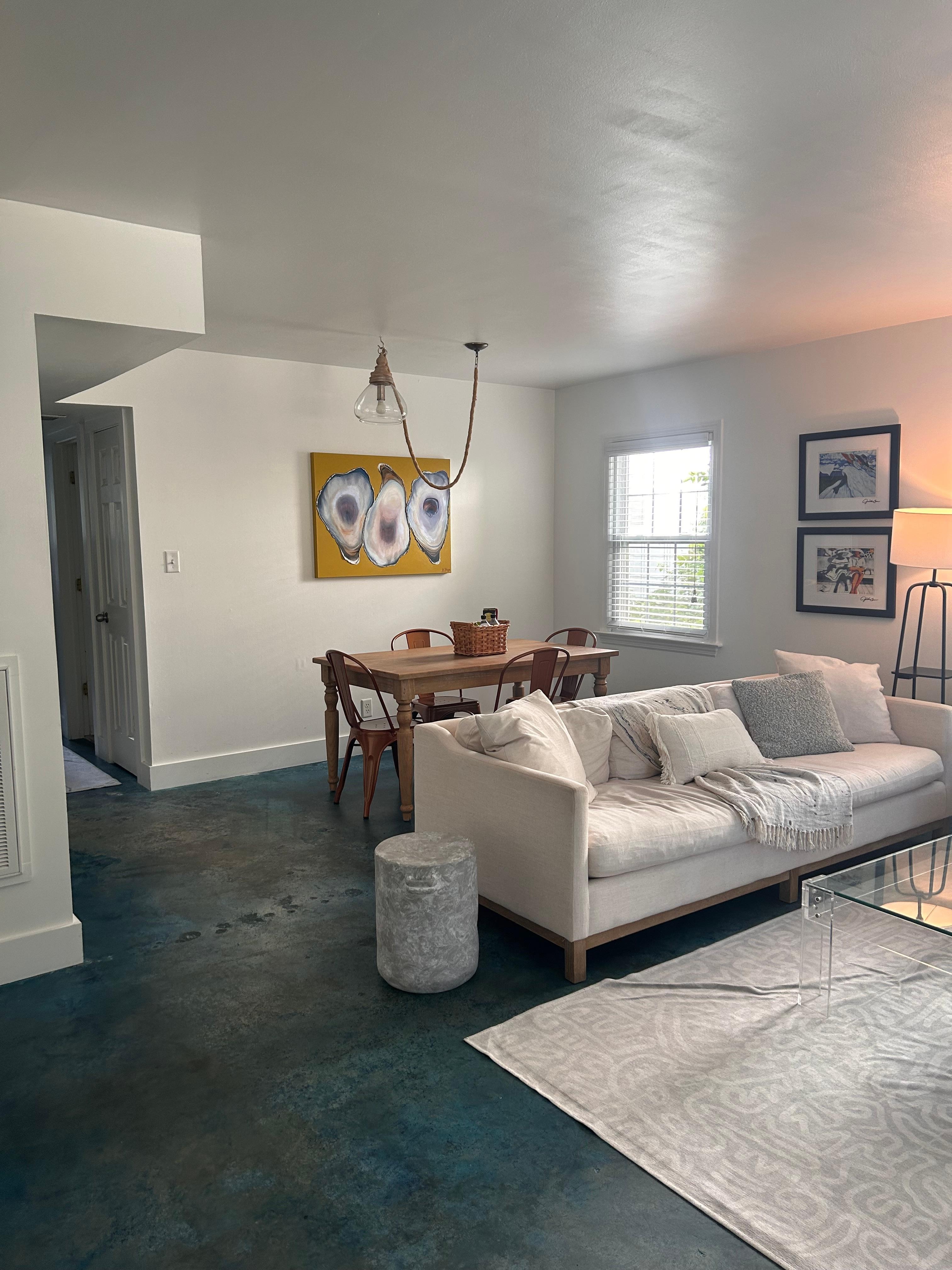 The ‘Oyster House’ is newly updated & ideal for groups of 2-4 guests w/ 2 bedrooms (1 king & 1 queen bed), & 1 full bath. There's ample lounge spaces indoors with an open living space including a full dining table that opens to the living room with a couch, and two chairs. You'll be just steps from the beauty of Hampton Park, where there's access to outdoor recreation options. On Street parking is no issue here!