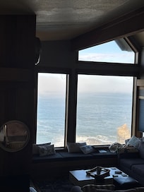 Beautiful home with fantastic ocean views. Enjoyed watching the sea birds flying by right at the level of the windows amd the sunsets over the Pacific. Fully stocked kitchen, nice seating area and large bedrooms. Close to town while still feeling private.