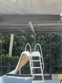 We arrived to a clean interior, but many issues that should have been fixed prior to renting. Broken toilet on the bottom floor, outlets not working, door handles missing to the pool deck, cob webs covering the entire pool deck, and a green pool full of algae. The host requests that you don’t communicate through the app, however their property manager took hours to respond and at first claimed we were lying because she was there the day prior. A handyman and pool company came out on day 2 of our stay, but we couldn’t swim until after 7pm due to chemicals and they fixed “most” of the other issues. When we shared our frustration, the host eventually said our only option was to leave the property and go somewhere else. Which truthfully, was a frustrating response because we were there to celebrate my mom’s 50th birthday. We spent 2 of our 3 days facilitating getting these issues resolved. It just wasn’t ideal. The house itself was great and the stay ended up being fine, but the condition of the property was disappointing. I do also want to point out that there is no drinking water or ice on the property. It’s not a huge deal, but important to know if you’re traveling from out of town! Publix is right down the road but easier when you can plan for it. The listing also shows 2 bikes, there was only 1 & had 2 flat tires & no bike pump. Lots of kids toys & the golf cart was our highlight!Again, not the end of the world but I do think this property was unfortunately overpriced.