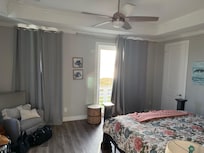 There are beds enough to sleep a crowd--20!!-- but the house is designed so that you won't feel you are all sleeping on top of each other, unless, of course, you are sleeping in the bunk room! Two master bedrooms, one upstairs and one down, have king-sized beds, en suite baths, private balconies, and for convenience, the upstairs master is equipped with an added luxury: a handy two-person coffee maker for morning balcony quiet time, and a wine bar for sunset toasting time! Additionally, there are two secondary masters with queen beds and private en suite baths. This setup makes this vacation retreat perfect for a multi-generational family trip or a couple's weekend with four couples plus kids. And about those kids--the bunk room provides beds for 8! Plus a sofa bed in one living area, and a twin/trundle in one master make room for some overflow. And for the tiniest humans, we provide a pack and play for your convenience. Each bedroom boasts a luxury extra large shower, with the exception of one, which has a shower/tub combo for those tiny tots.