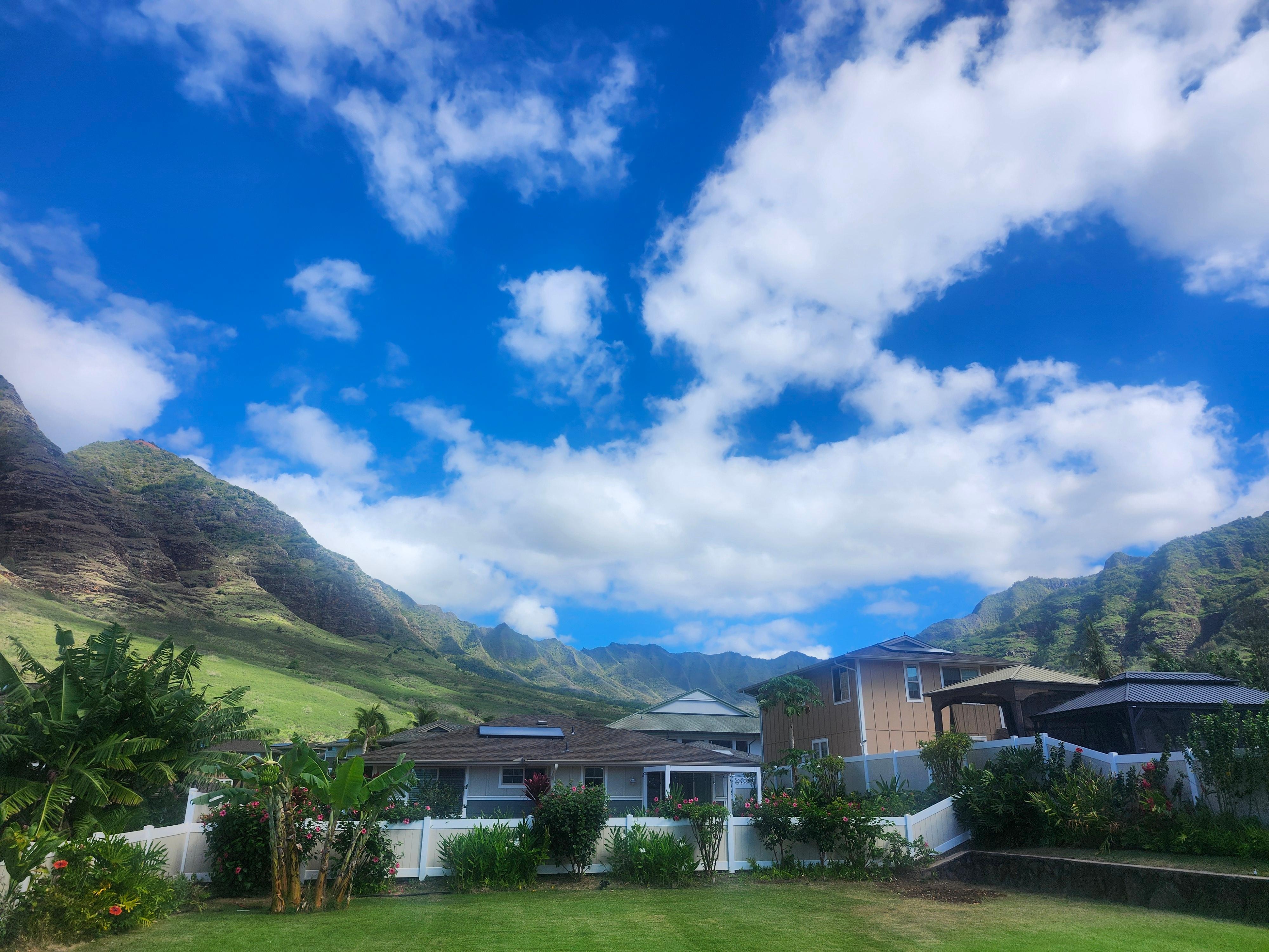 Discover the idyllic charm of Hawaiian paradise on Oahu's west coast, nestled within a tranquil, secure gated community. This brand-new, stylish 4-bedroom, 3.5-bath home, distinct with unique Modern design elements, comfortably accommodates up to 10 guests. It is positioned amidst the serene beauty of Makaha Valley, away from the city's hustle and bustle. Enjoy the aromatic fragrances of gardenia and jasmine from our lush tropical garden, featuring a diverse array of plants such as hibiscus, red ti, red lady papaya, and a variety of palm trees. Delight in leisurely afternoons in this verdant space, complete with an outdoor BBQ for delightful alfresco dining. With breathtaking ocean views and the beach nearby, our vacation home is your ultimate Hawaiian retreat!