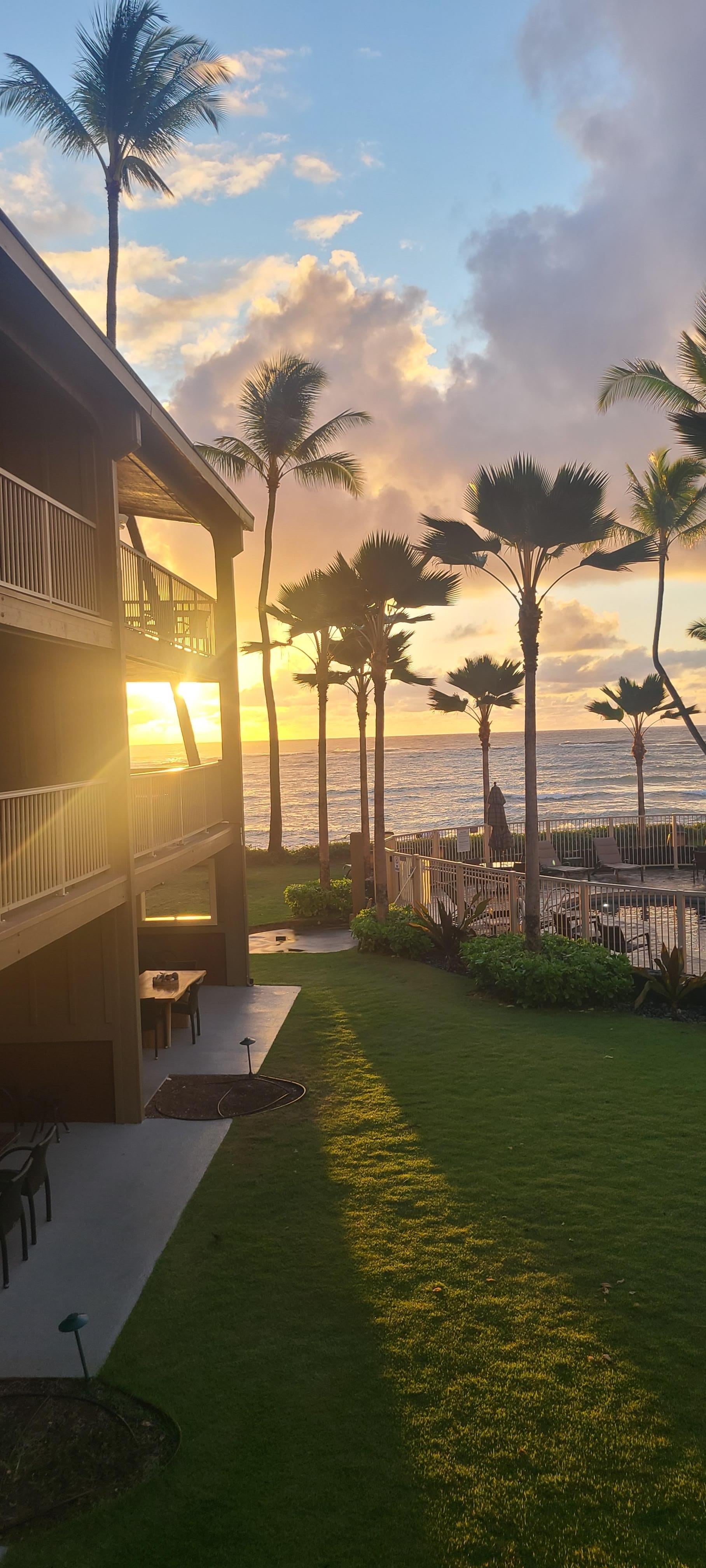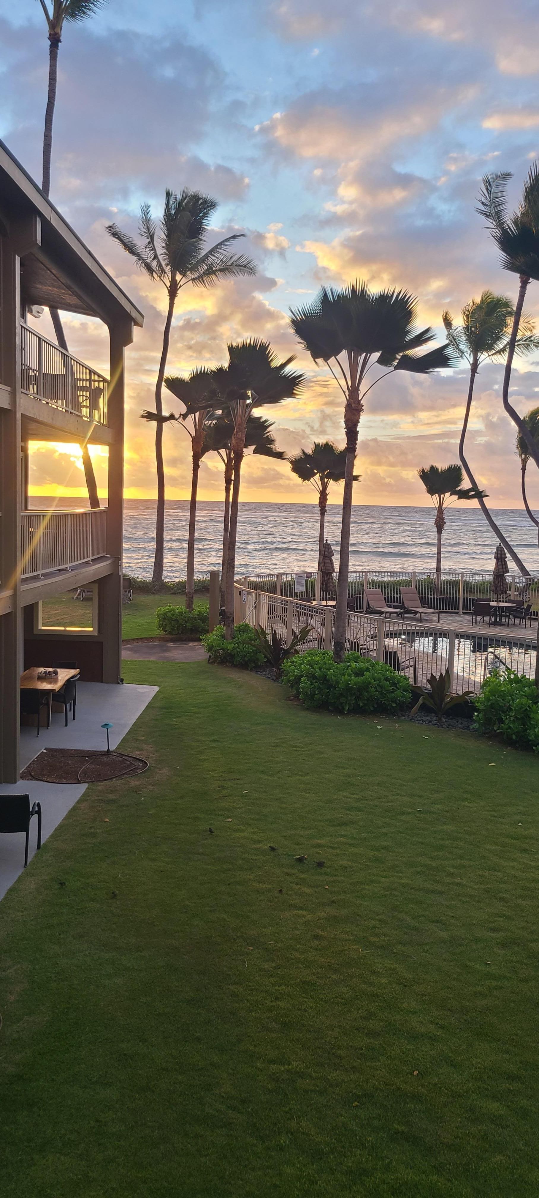 A spectacular second-floor beachfront condo offers breathtaking views of the ocean. The beach is steps away so take your morning cup of coffee on the beach as you watch the inspiring sunrise and listen to the soothing sound of the waves. Conveniently close to shops, grocery market, restaurants, and Coconut Coast. The condo is centrally located in Kauai's eclectic town of Kapa'a making it easy to visit the North and West side of the island.