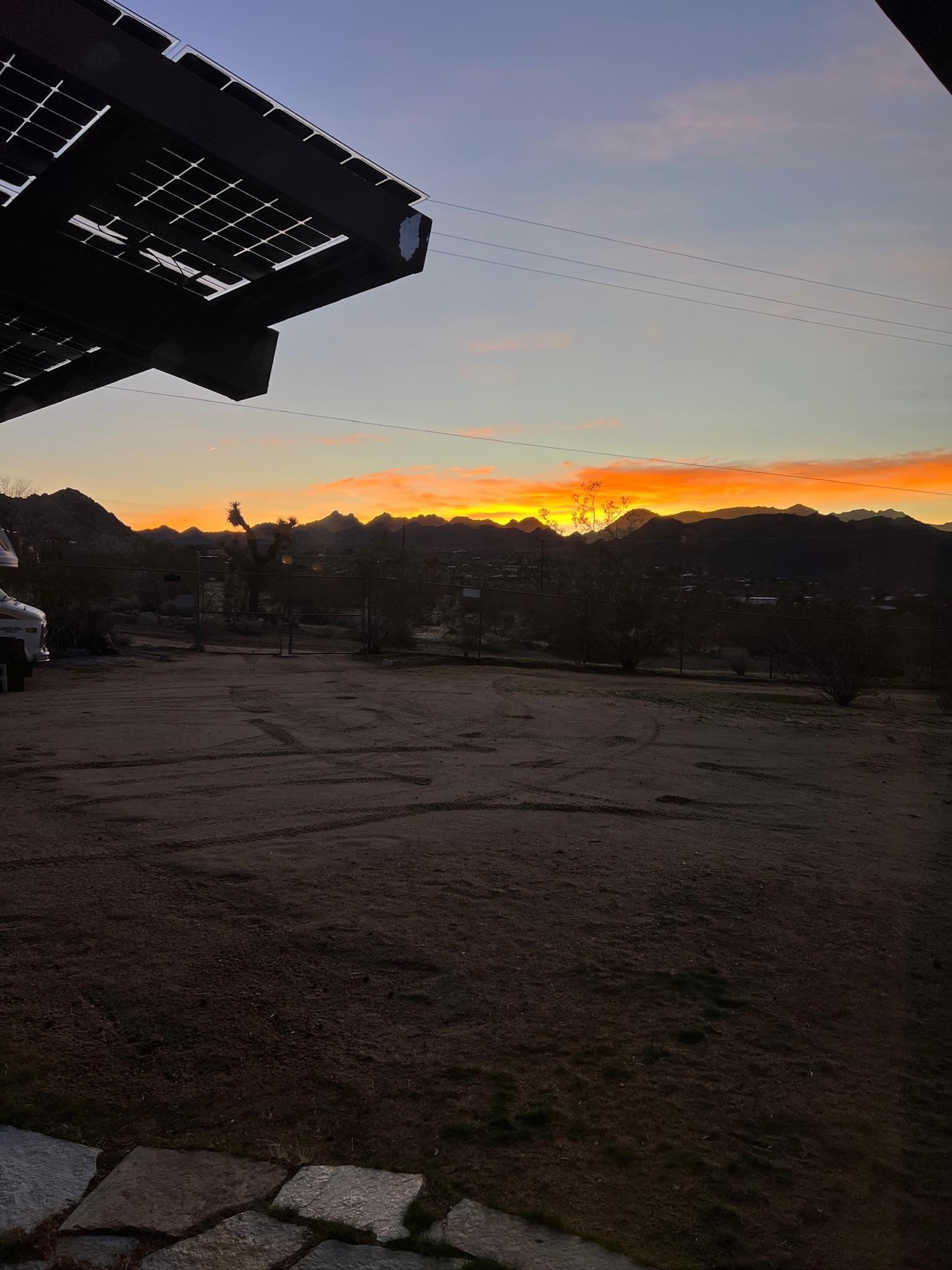 Kitchen & dining room face east, sun rises over the rocks in the JT National Park. Living room & bedroom face west/sundown. There is padded outdoor seating on each side of the house including outdoor fire pits. Provide your own firewood for any outdoor fires. Outdoor shower on north side of house facing the beautiful natural rock pile for summer fun.