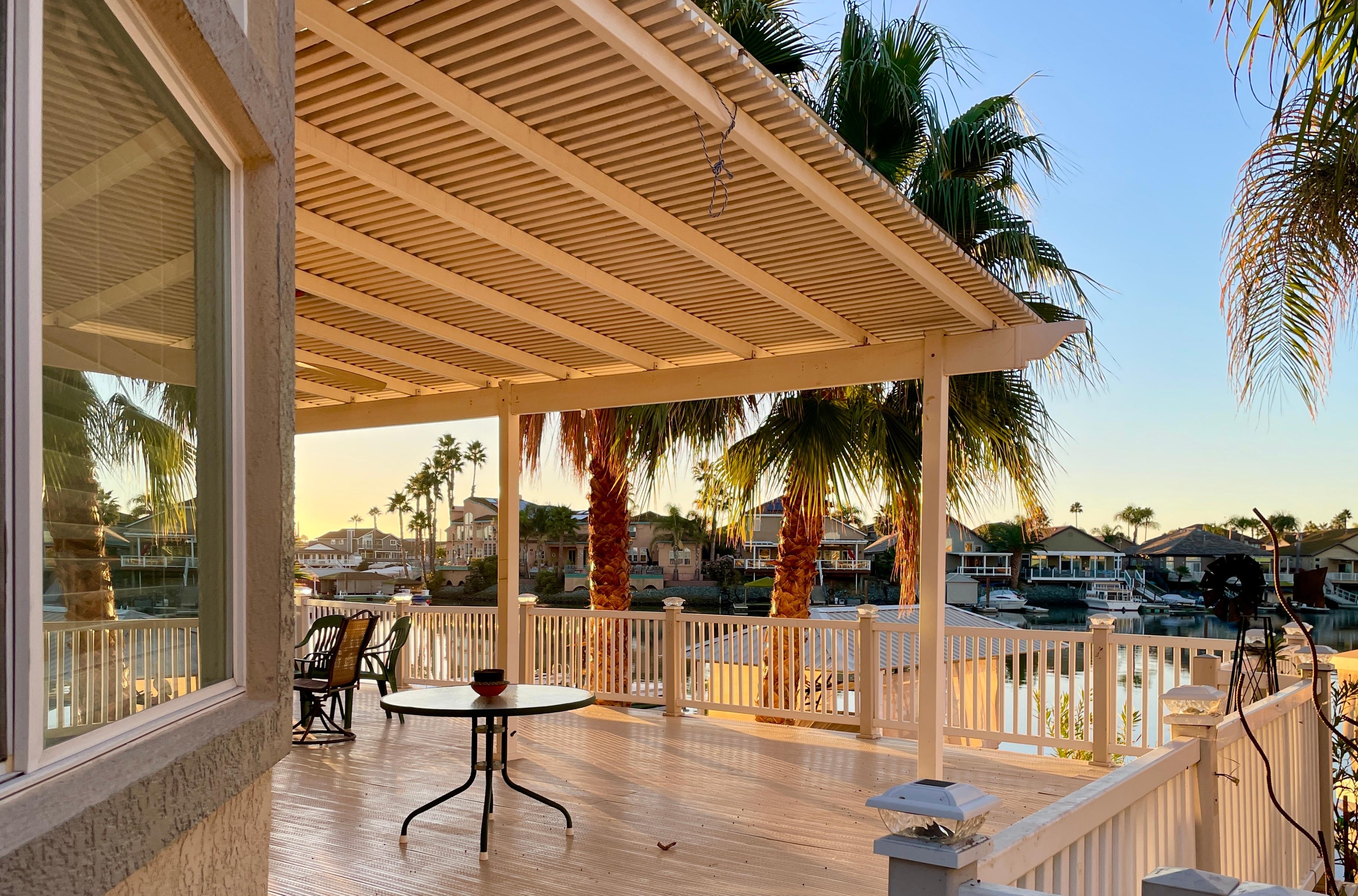 OPEN FLOOR PLAN WITH SIDEYARD PARKING AND WONDERFUL REAR DECK WITH OVERHANG; U-DOCK WITH NEW ALUMINUM RAMP, 4 BEDS AND 2 FULL BATHS, UPPDATED LARGE OPEN KITCHEN WITH EVERY AMENITY INCLUDING BAR WITH WINE-REFRIGERATOR WHICH OVERLOOKS GRAND ROOM WITH FIREPLACE; ALL TILE FLOORING; FULLY FURNISHED AND AVAILABLE LONG AND SHORT TERM..