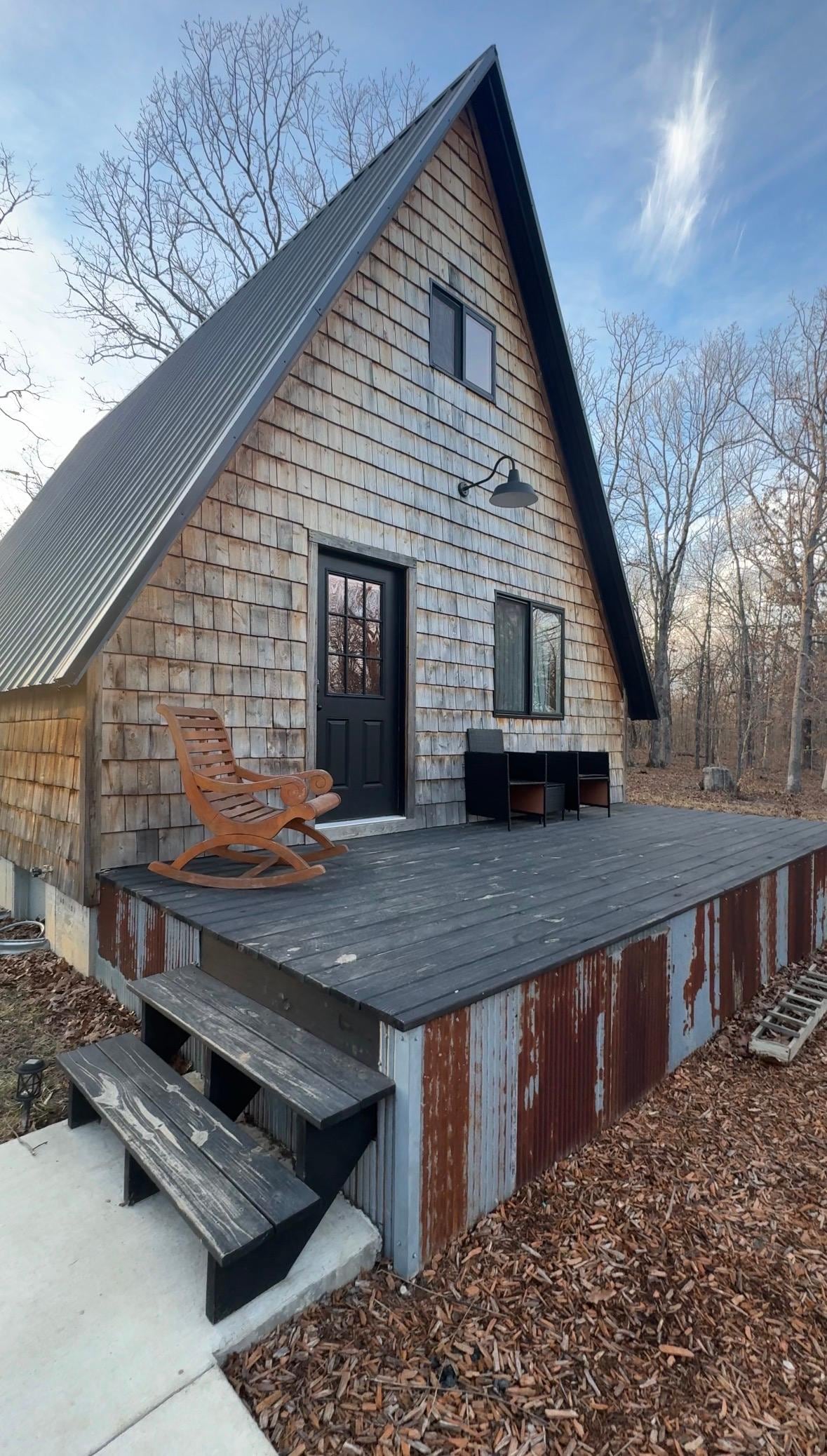 Adorable newer A-frame just outside of Bennet Springs Park. Owners used reclaimed wood, antiques and the perfect amount of decor to decorate this cute gem. Plenty of space, bigger inside than it looked. Everything we needed, and we cooked most meals at the cabin. Highly recommend!