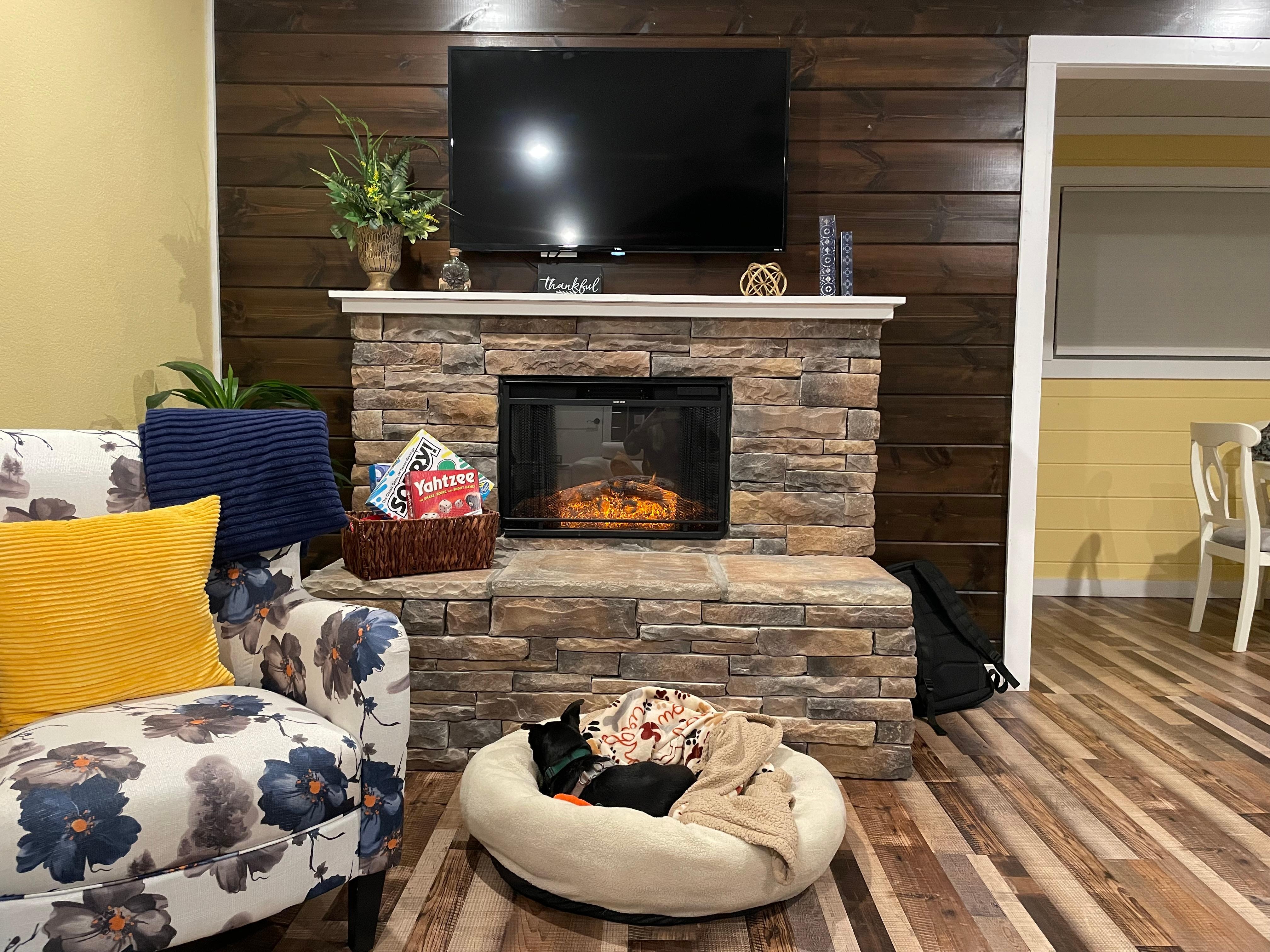 Sunset Hollow offers everything and more that you need for two. The moment you open the door to the cheerful yet calming interiors it can bring on a pleasant sensation of knowing this is your home away from home for the next few days. This spacious studio has plush bedding with overhead lighting that's great for reading in bed, a beautiful kitchen with live edge granite, and modern furnishings. The coffee bar has several ways for you to enjoy your daily cup of joe or tea; Keurig, Drip, French Press, and Kettle the choice is yours. Down the rich wood lined hall is the beautiful bath with plush comfortable robes and access to the outdoor deck. This cottage has a great vantage point of the entire intimate park area right from the comfort of the deck or sitting out by the firepit. You are sure to enjoy the comforts of this cottage!