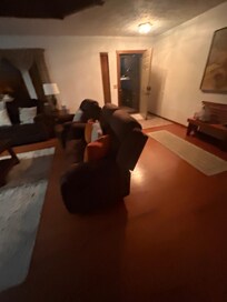 The living room has a gas fireplace, large TV, and Wi-Fi. New furniture with five reclining pieces!
