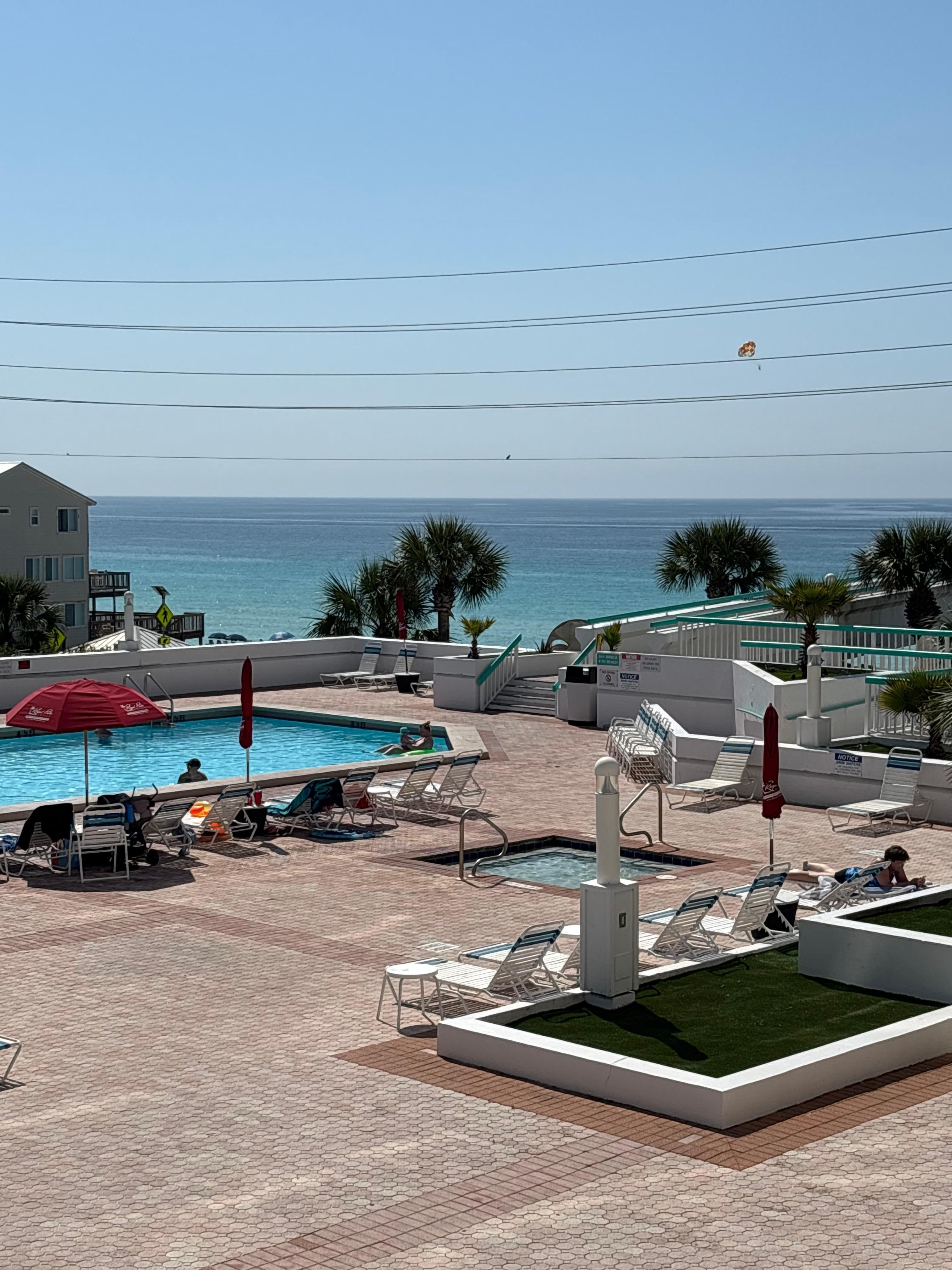 Condo was super clean and beautifully decorated. Great location. Across the street from the beach but with views of the ocean from the master bedroom and living room. Balcony was huge and overlooked the pool. My boys loved the basketball court. Hot tub jets didn’t work the entire week we were there. Definitely a piece of paradise. Weather was fantastic. This condo did not disappoint. Listing spot on. Definitely would recommend!