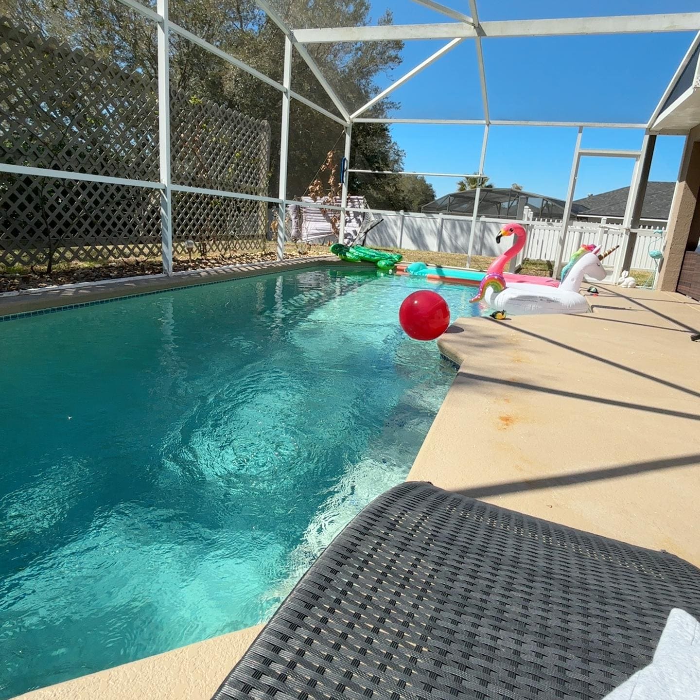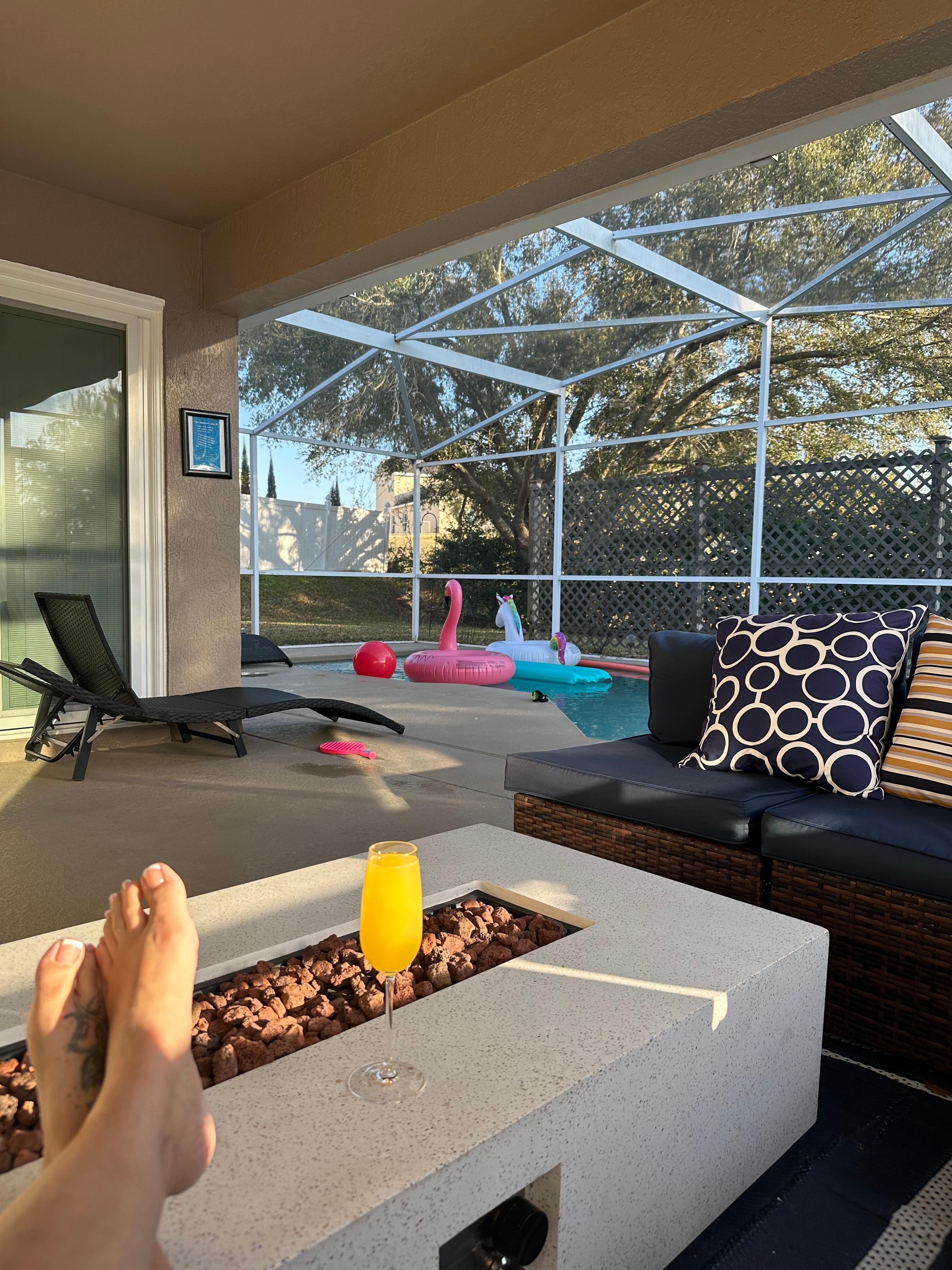 Dive into relaxation with our private pool, perfect for a refreshing swim or lounging under the Florida sun. Fire pit and outdoor TV are perfect for a cozy evening while enjoying BBQ with your family/friends.