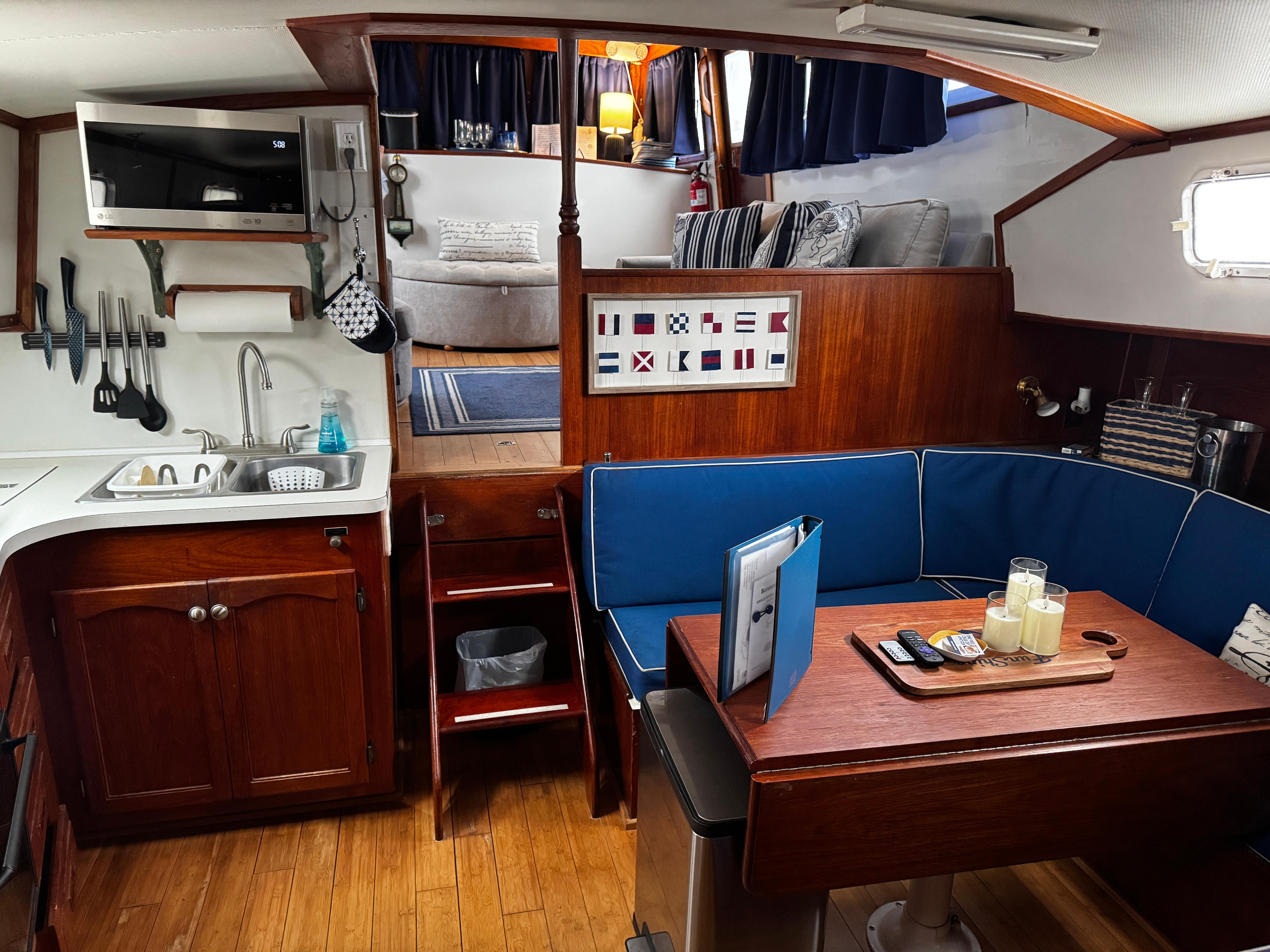 My husband and I are looking forward to buying a boat to live on. This stay helped us with knowing what it would feel like living in a marina on a boat. It was research and We loved it, just a cozy stay on the boat is all we needed. It was great!