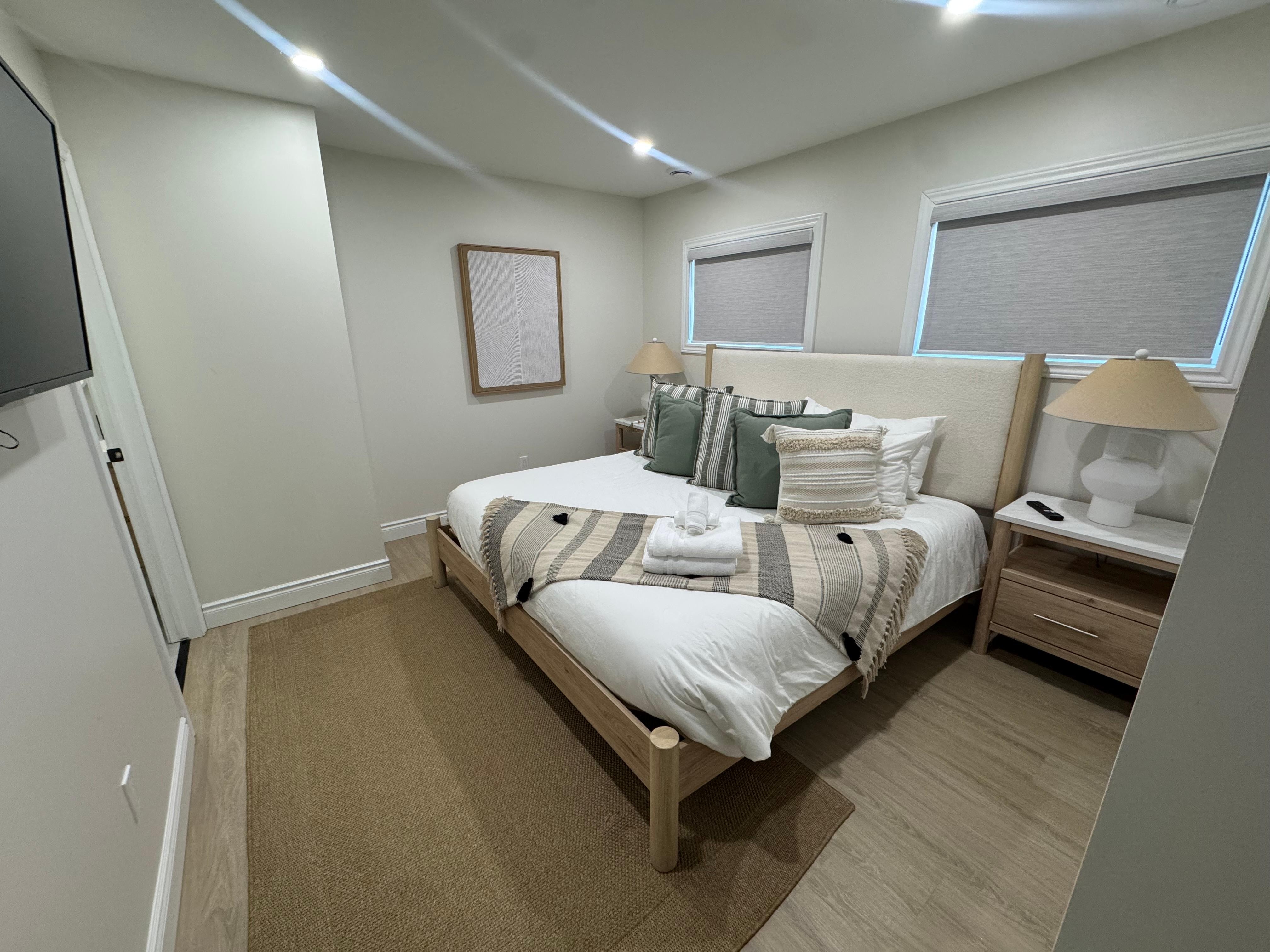 Cozy Queen Room: A warm and inviting space with its own smart TV.