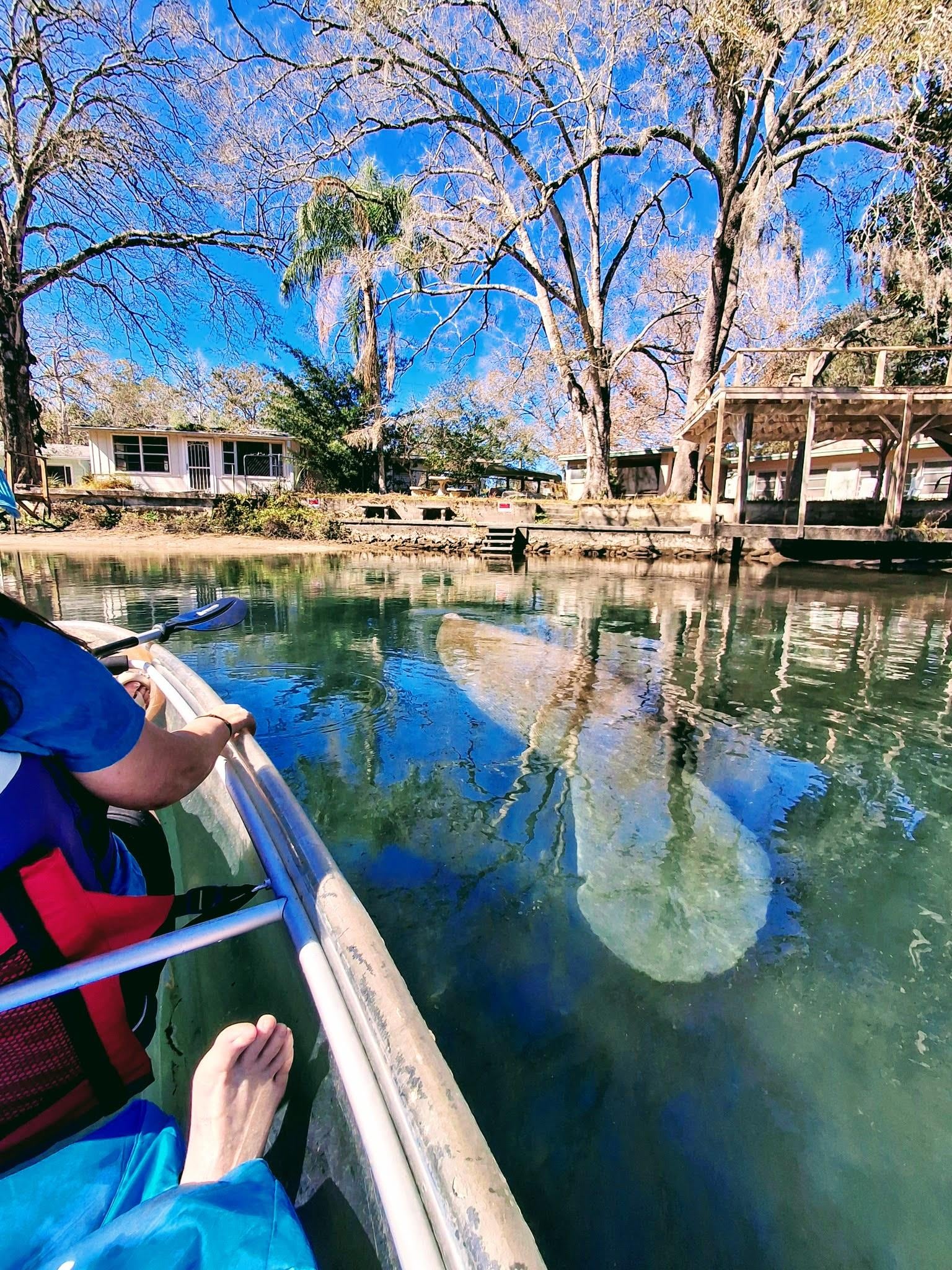Floating dock offers guests easy access getting in and out of kayaks. Cruising alongside manatees is an experience of a lifetime!