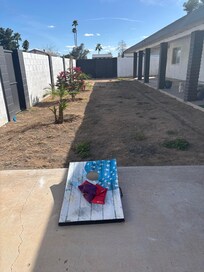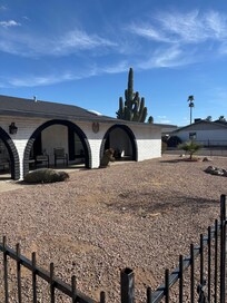 This spacious, newly remodeled 3-bedroom, 2-bathroom home features beautiful flooring, large open windows, and a cozy, modern design filled with natural light. Relax in the living room with an 85-inch TV for movie nights. Enjoy the beautiful big shade outside, perfect for lounging. Centrally located with easy access to Phoenix, Tucson, and the airport, this home is ideal for business trips or family getaways. Fully equipped with all essentials, including fast WiFi, ensuring a comfortable stay.