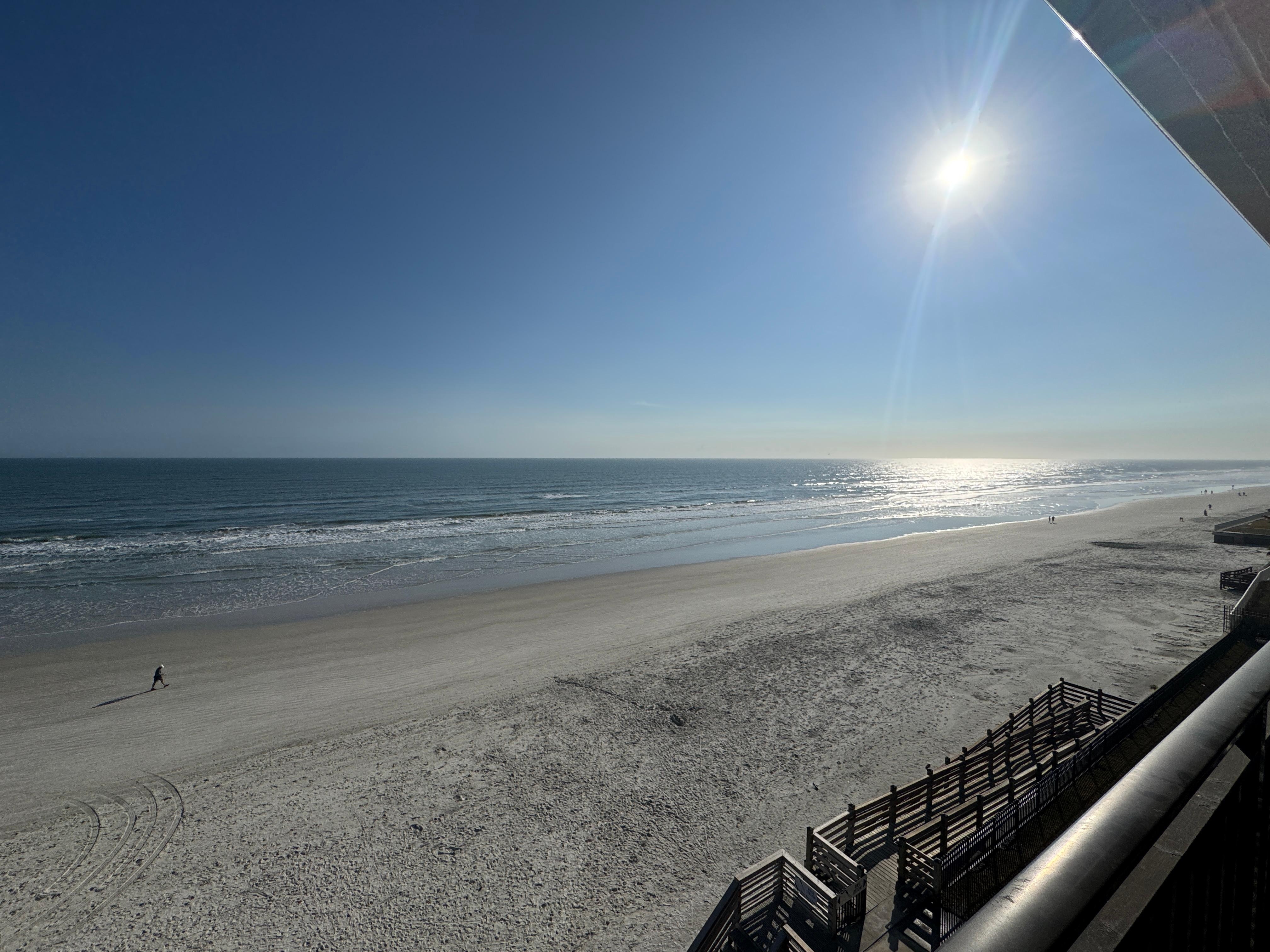 Direct Ocean Front, Top Floor, 3 bed/2 bath condo is the perfect retreat. Featuring 2 king beds & 2 single beds, perfect for families or friends looking for an amazing getaway. Nestled just close enough to the fun and lively Flagler Ave, but far enough away to enjoy all the tranquility NSB has to offer. With amenities like ROOFTOP POOL, fitness room, tennis/ pickle ball courts, shuffle board, WiFi and AC, guests can relax and unwind in style. Wake up to the sound of waves in the living room & master bedroom. Soak in the blue-water views from sunrise to sunset every single day. Located on the NO-DRIVE section of the beach, it's safe, peaceful, and perfect for morning strolls, beach games, or just relaxing in the sand without the traffic. The 2 bathrooms are equippedy with a hairdryer and shower for convenience. We'll be available to answer any questions while you stay at our place.