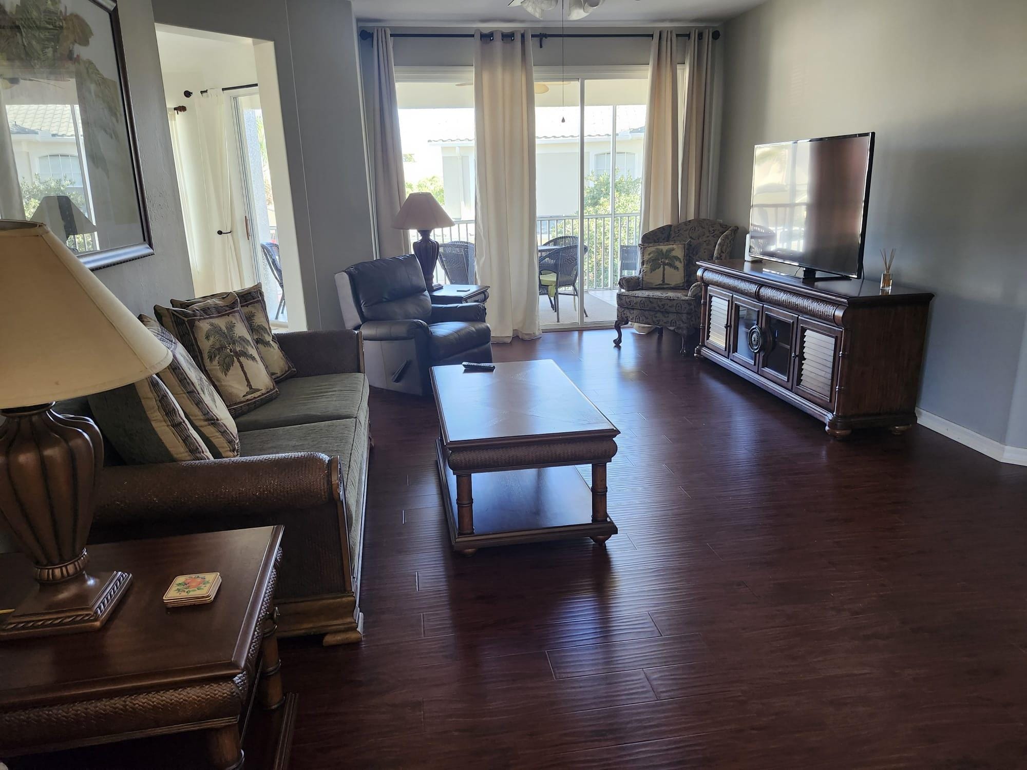 Frank, our amiable host met us despite his tight schedule to show us the house and explain a gew things. The spacious (and verging on opulent) house was in excellent condition, tidy, clean and inviting. It was nicely appointed and well stocked. Even condiments in the fridge along with a bottle of wine and a couple beers. The screened balcony was enjoyed every morning for an el fresco breakfast. We had use of the attached garage which was handy to keep our e-bikes in. The three of us had ample room. The beds were luxuriously comfortable ensuring a great sleep. The ensuite bathroom had a double sink, shower and a large tub built for two. In house washer and dryer was handy. The 80 gallon water heater ensured everyone could use hot water at the same time and not run out. The community at large is meticulously maintained. Manicured lawns, smooth streets and more beautiful homes for miles. At night all the house outside lights come on automatically, making for a welcoming and cozy feel to the community. We had use of the pool and hot tub where we would meet interesting owners and vacationers. In fact, everyone we met on our walks and rides were friendly and engaging. Restautants and service businesses were minutes away and prolific. Lots of choice. The gated community left us feeling totally at ease enabling us to not worry about safety on our vacation. Frank was excellent at communicating and always ready to help out with any info required or needs we had.