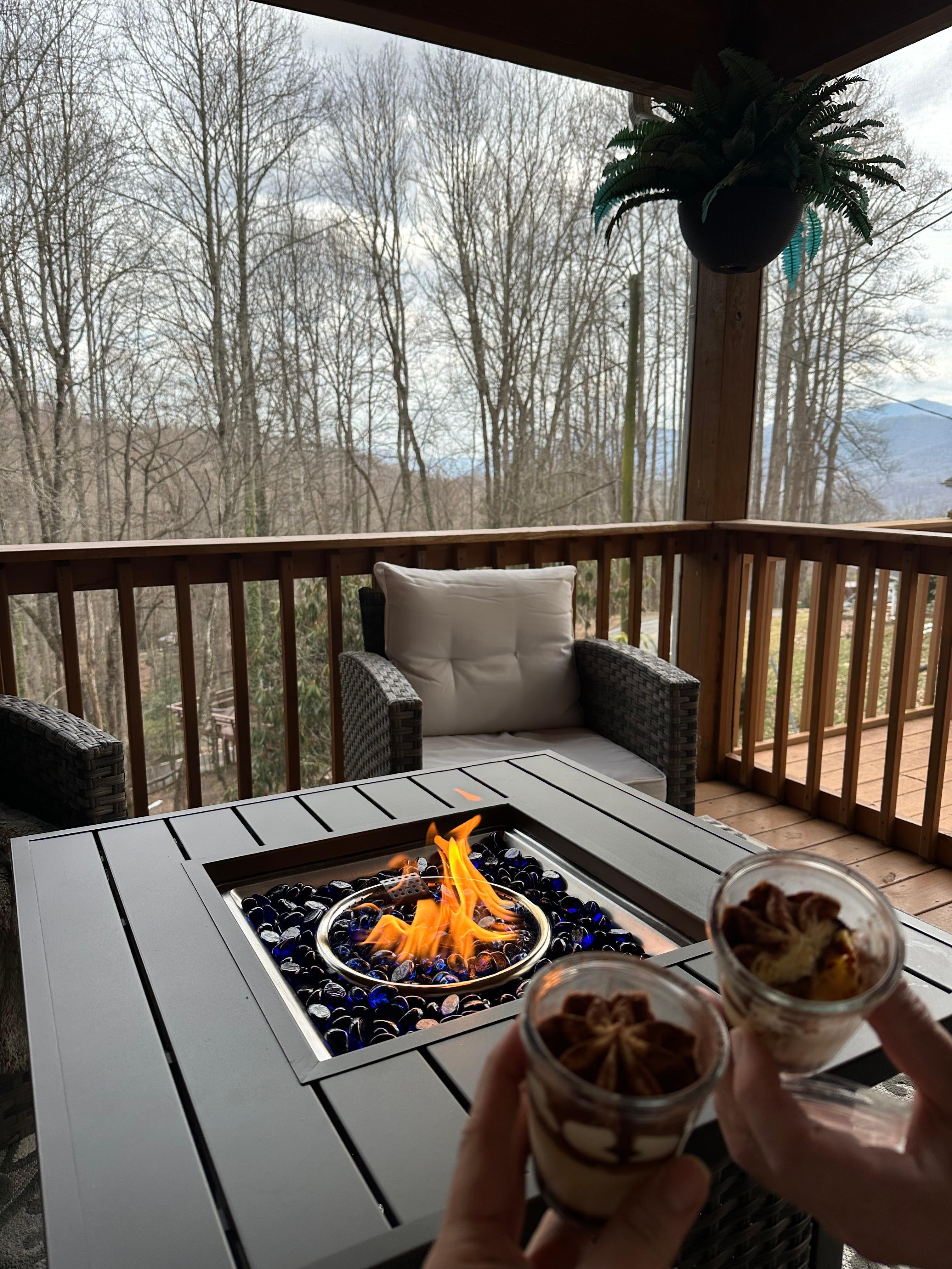 Outside there is an expansive, screened porch with ample seating, propane fire pit, ceiling fan and canned lighting. Experience the southern sunrise with your morning coffee and listen to the rushing triple springs nearby. The porch is the perfect place to enjoy the sights and sounds of the surrounding wilderness. The screened porch offers panoramic mountain views, allowing you to immerse yourself in the tranquility of the surrounding landscape leaving all your stress behind.