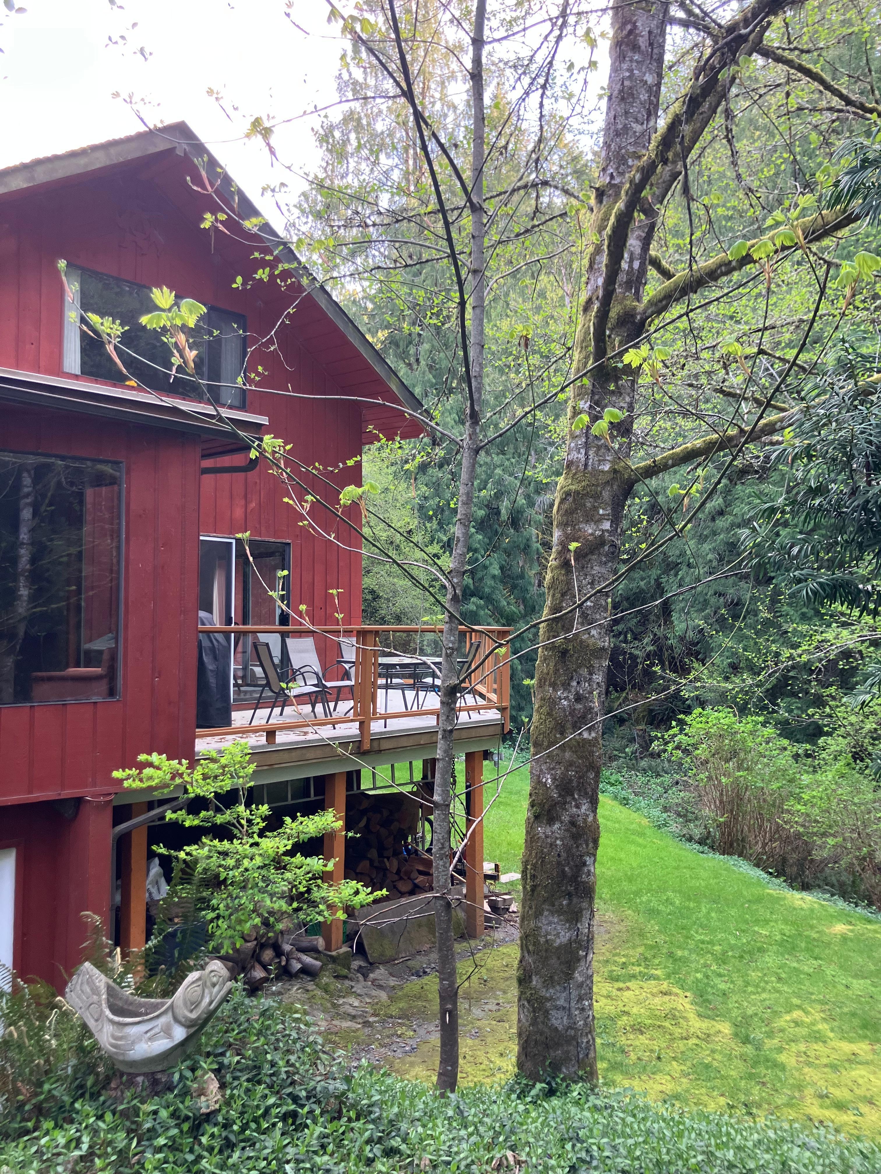 Dette er en unik fuldt møbleret privat 2 soveværelse / 1 (nyrenoveret) badeværelse suite beliggende på to skovklædte hektar ved bunden af smukke Mt. Finlayson i magisk Goldstream Park. Med fantastisk skovudsigt, hyggeligt åbent koncept boligareal og smukt dæk med udsigt over en ål foret med gamle Red Cedars, er dette rum en naturelskersdrøm. Perfekt til hvile, maleri, meditering, skovkig eller fuglekikkeri, den stadig skiftende udsigt vil fascinere enhver påskuer. Det hyggelige åbne koncept boligareal - komplet med brændeovn til en sommerfodbold - er fantastisk til at hygge sig under madlavning og fortsætter ud på et stort privat dæk, perfekt til at nyde et måltid (vejret tillader det), socialisere eller fange et stille øjeblik alene med skoven.