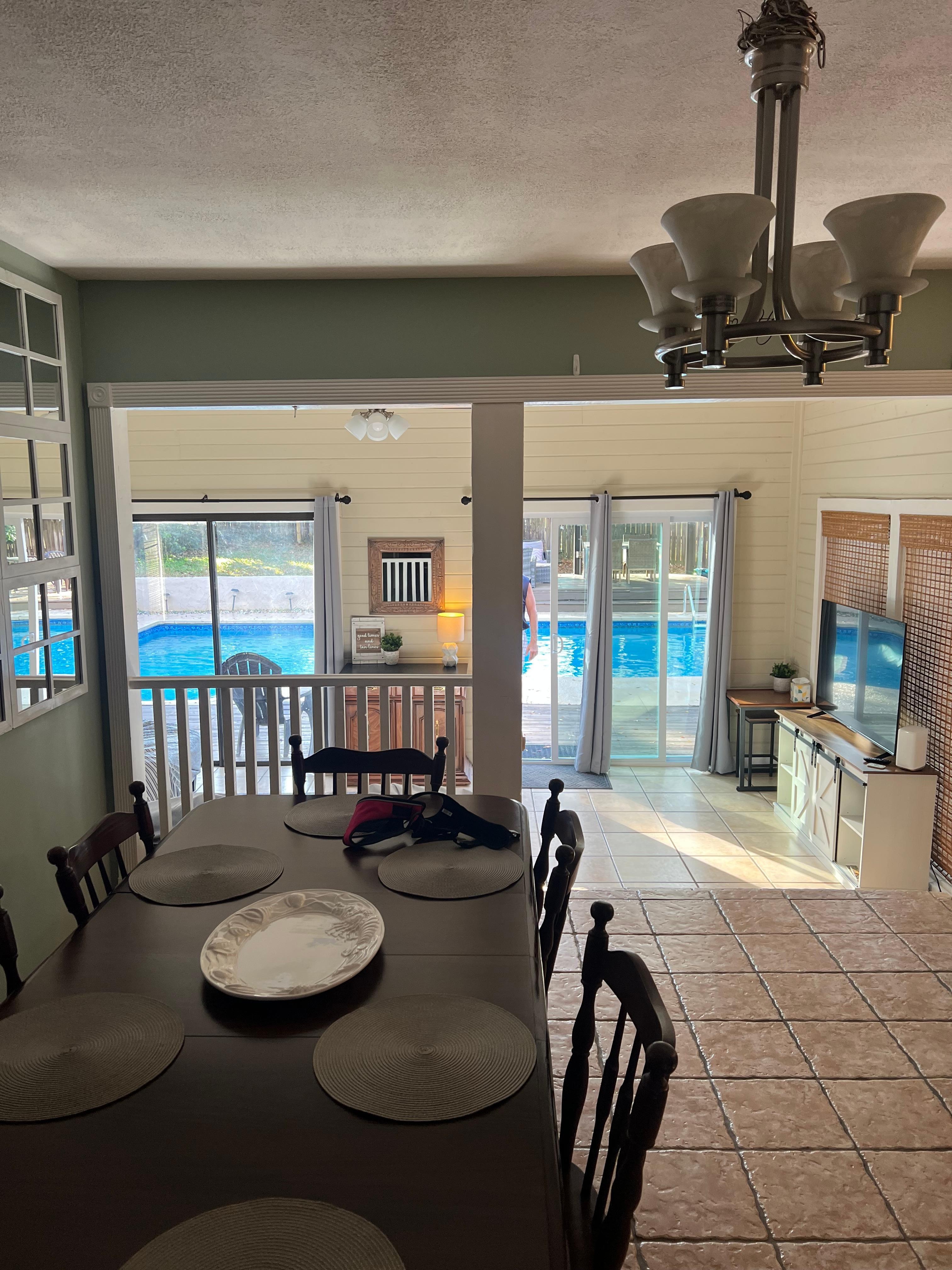 Nyd denne hyggelige pool hjemme i et livligt kvarter tæt på FSU, FAMU, områdets parker og Downtown aktiviteter. Vores hjem har 3 soveværelser, 2 badeværelser, 2 boligarealer, fuldt udstyret køkken, privatlivet indhegnet baggård med pool, overdækket pool hus til skygge med ventilator for at holde dig køligt, fuld vaskerum, master suite med jacuzzi badekar, meget mere for du skal nyde!