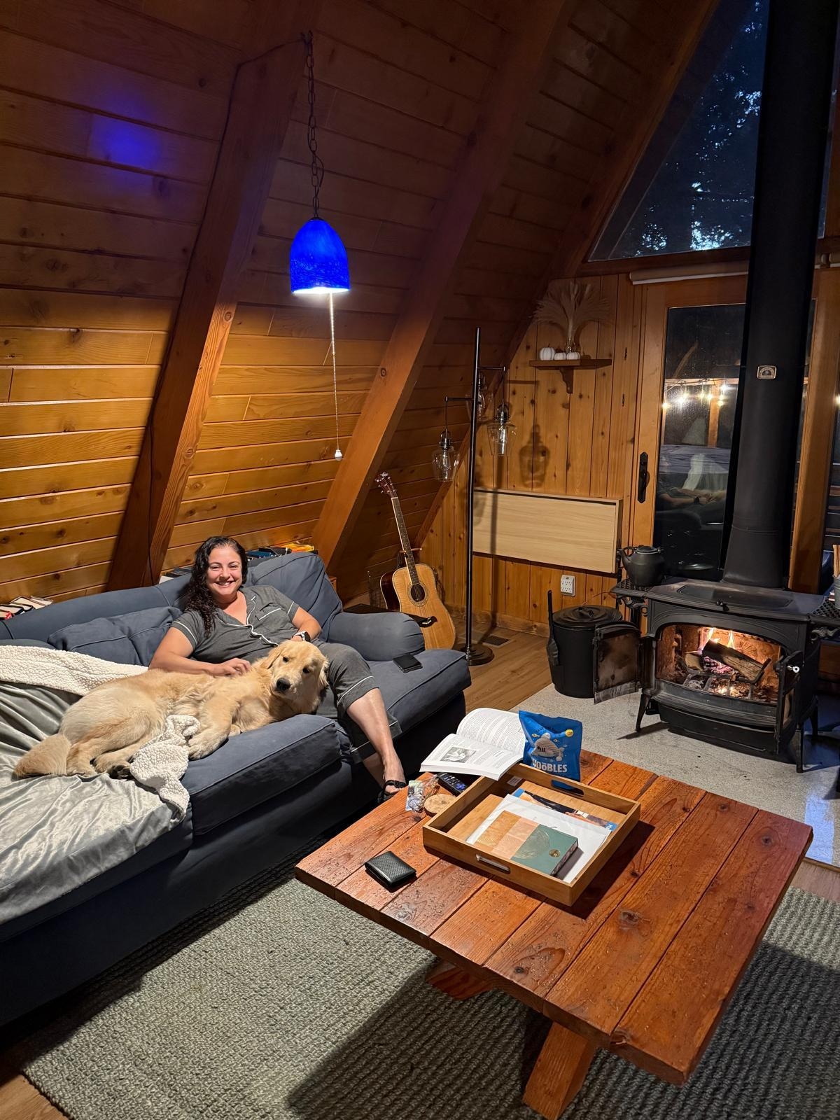 The location is perfect—nestled in the quiet pines but still close enough to town to grab a coffee or browse cute local shops. The outdoor space was a real highlight, with stunning forest views, a great deck for relaxing, and the indoor wood burning fire place made our evenings extra special.