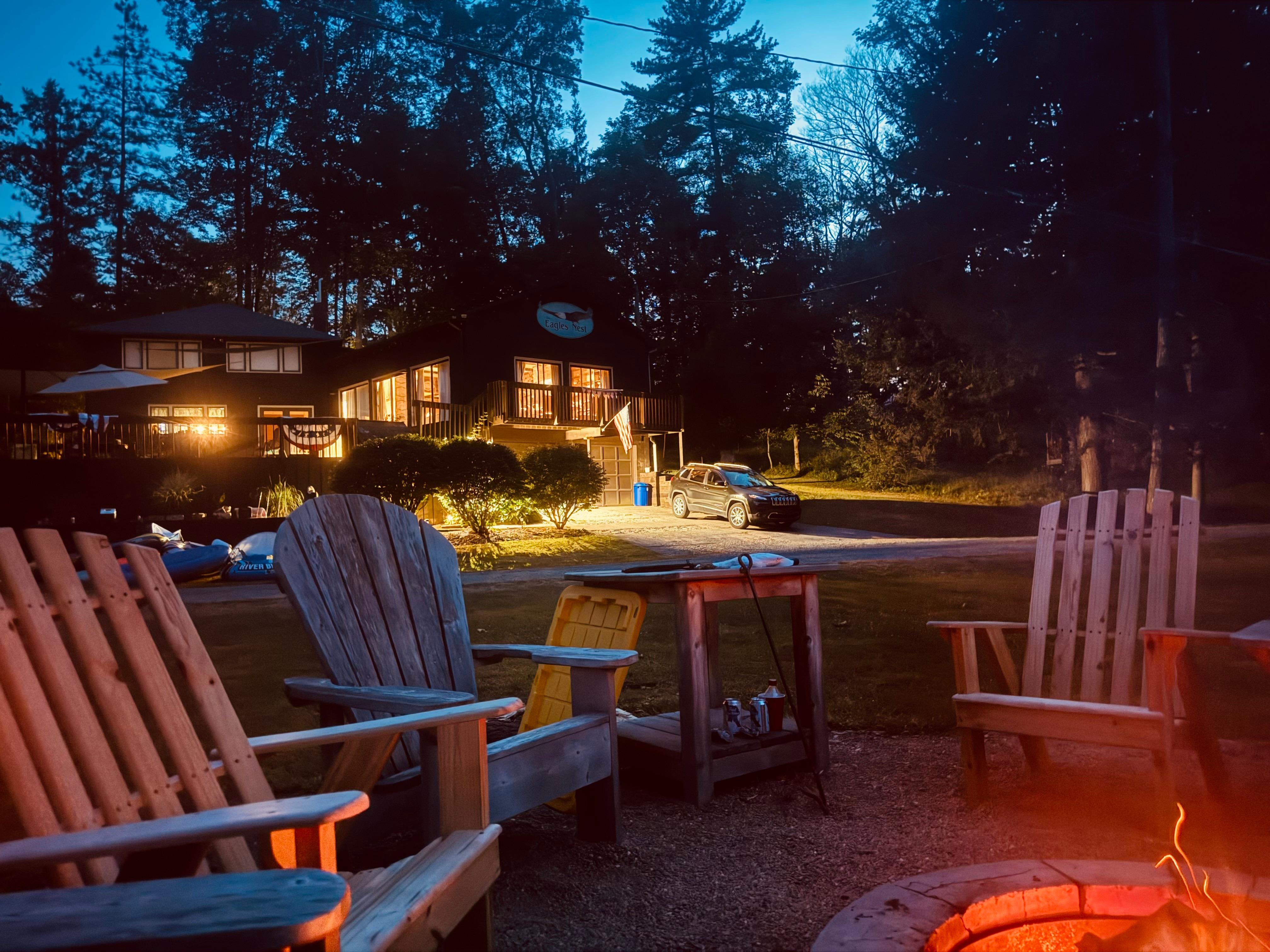Eagles Nest Village består af 3 forskellige boliger, der er placeret på samme ejendom. Det vigtigste hjem (Eagles Nest) er et rummeligt 3 værelses hjem, der kan rumme op til 9 personer. En to soveværelse hjem (Coyote Cabin) er placeret bag det største hjem og har senge til 5. Den tredje ejendom er et effektivitetshus (Chickadee Cottage), der indeholder en dronning seng, en hide-a-seng, køkken og badeværelse. Denne leje er for alle tre ejendomme. Det er en fantastisk beliggenhed for en familiesammenføring eller en multi-familie sammen.