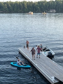 The inside of the cottage is very spacious, with many different spaces to enjoy including a muskoka sunroom, a tv family room, a space for games and puzzles, all with lots of windows for cross breezes and great natural light! The outdoor patio is very large and private with umbrellas for shade, as well as lots of full sun, and a spectacular view of the harbour. A private dock that is 8 x 40 feet has lots of room for boat dockage, swimming, and fishing!