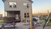 Step outside and enjoy the large private yard, complete with volleyball, basketball, badminton, and twinkly lights around the fire pit - perfect for evenings spent under the stars. Unwind in the hot tub on the back porch while taking in serene views of the tree line, or gather around the swings and firepit garden for laughter and s’mores.