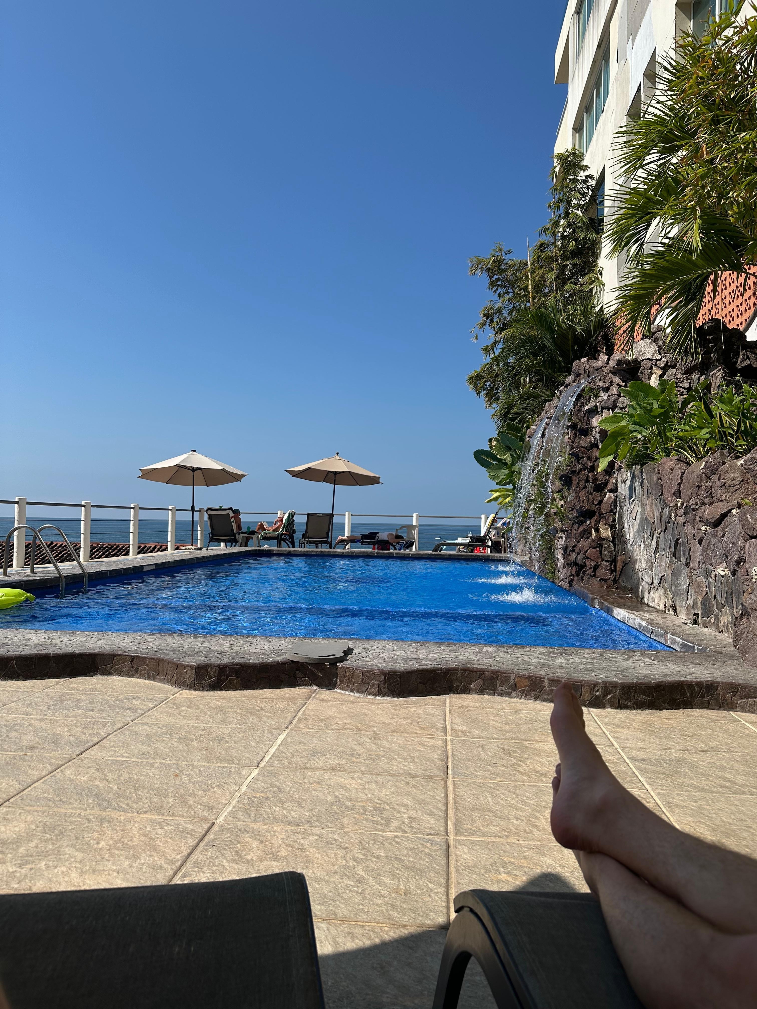Amenities include reception area. maid service twice per weekly stay, large pool with terrace overlooking beach and elevator down to Los Muertos Beach.