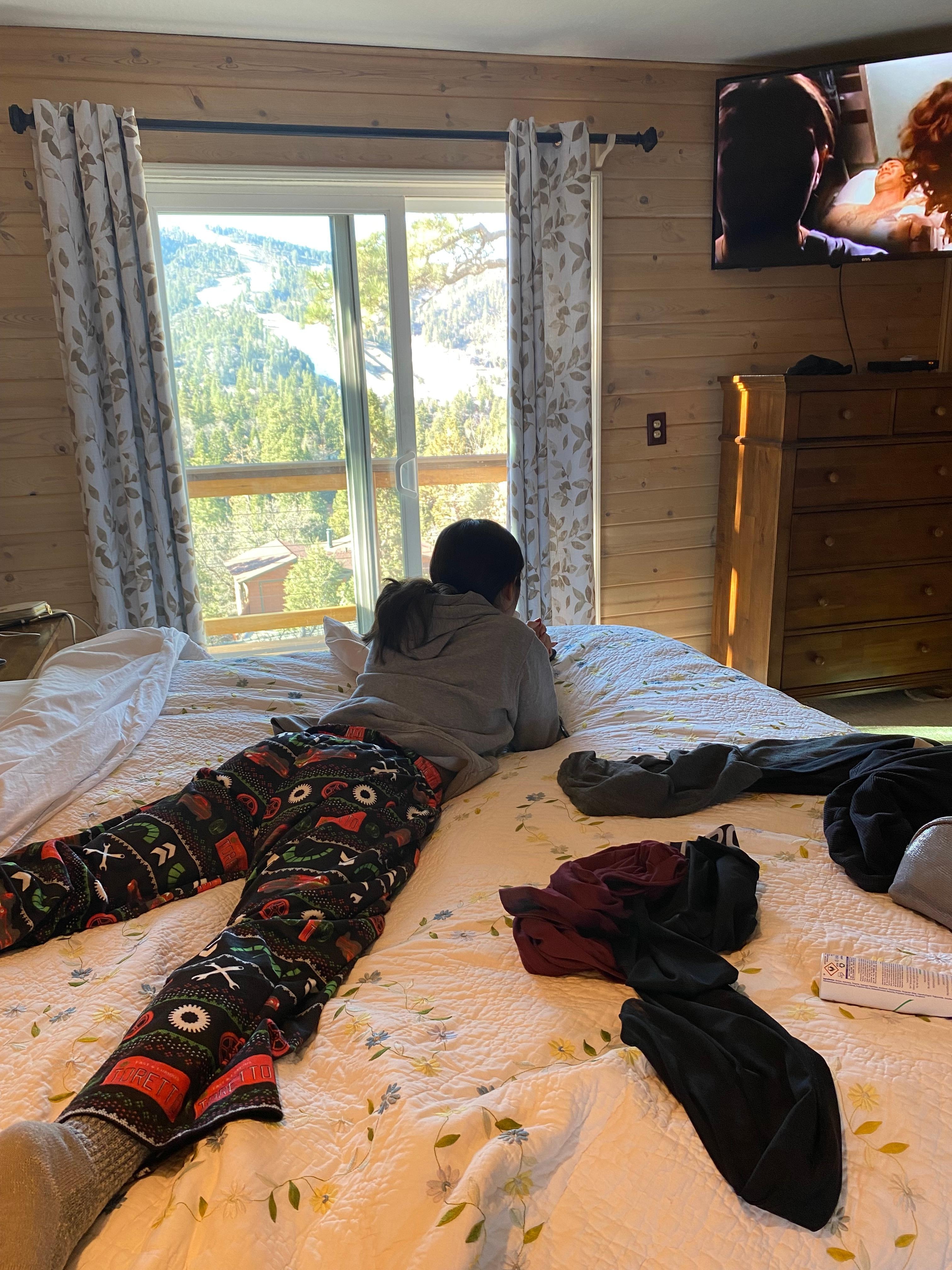 ✓ Location: Situated on a quiet street in Upper Moonridge, this cabin boasts unparalleled slope views of Bear Mountain Ski Resort.