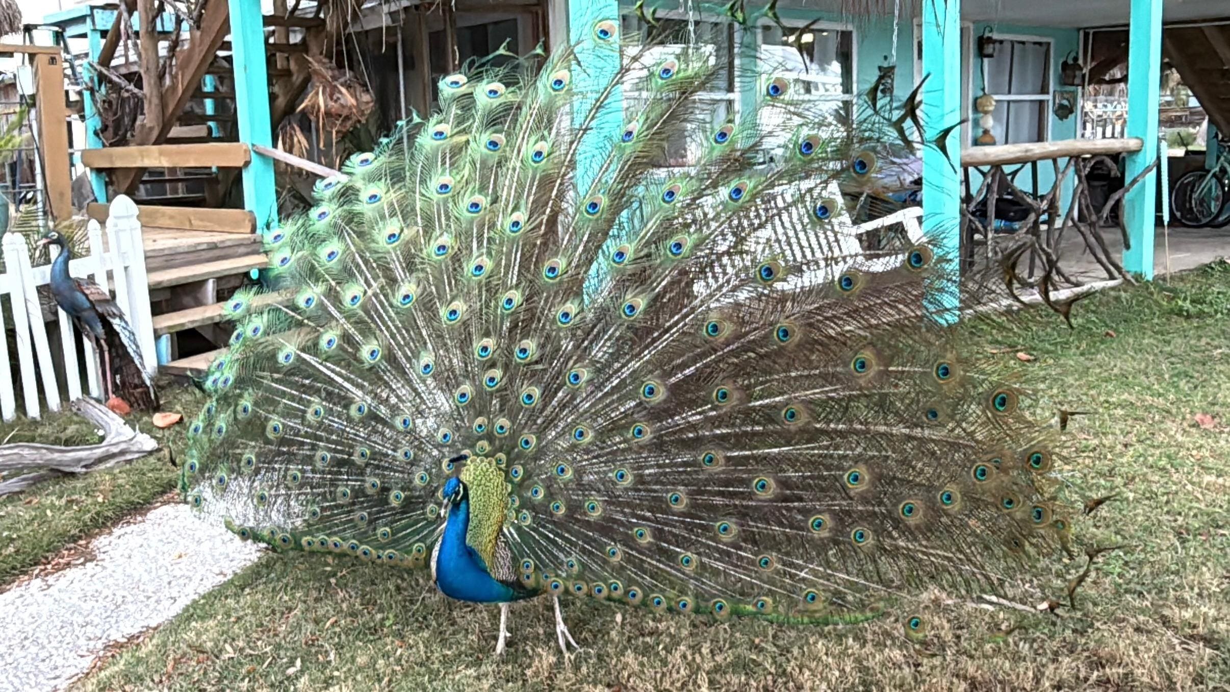 The pictures don't do this place justice - it was better than expected! The indoor space was clean and had everything we needed. The host has thought of every detail; the decorations and furnishings are so thoughtful! The outdoor space is gorgeous - there is literally a full size tiki bar! Our favorite part was Ozzy the peacock! He was the highlight of our trip! I loved waking up early and walking outside to Ozzy trotting over to greet me and ask for peanuts, which he will eat out of your hand! He even followed us to dinner at Blackwater Fins - walkable and the best food we had the whole trip! We will definitely be back to stay with Kathi and Ozzy!