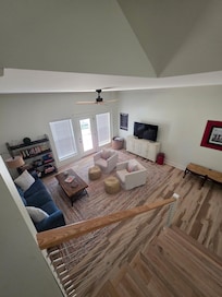 Great 2nd living space downstairs with large TV, games, movies, porch access